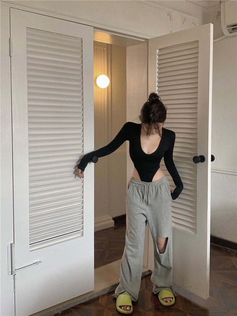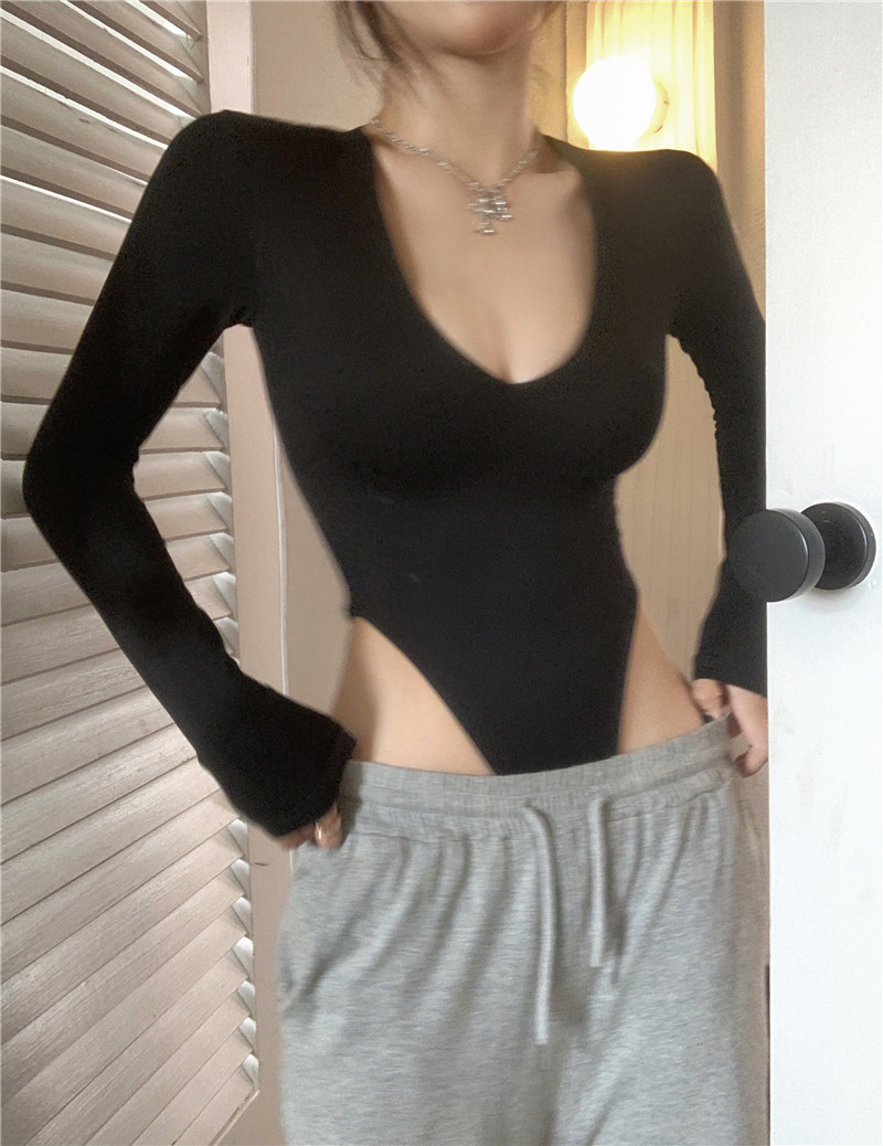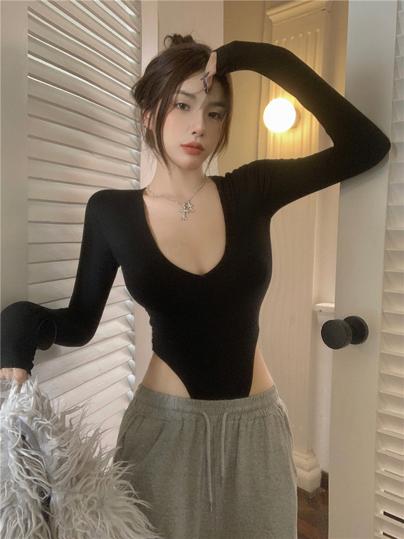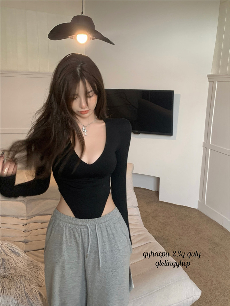 スリムでセクシーな女性用ジャンプスーツ、ニッチな痩身Vネックホットガールボトリングシャツ、シックでファッショナブルな春と秋のトップス