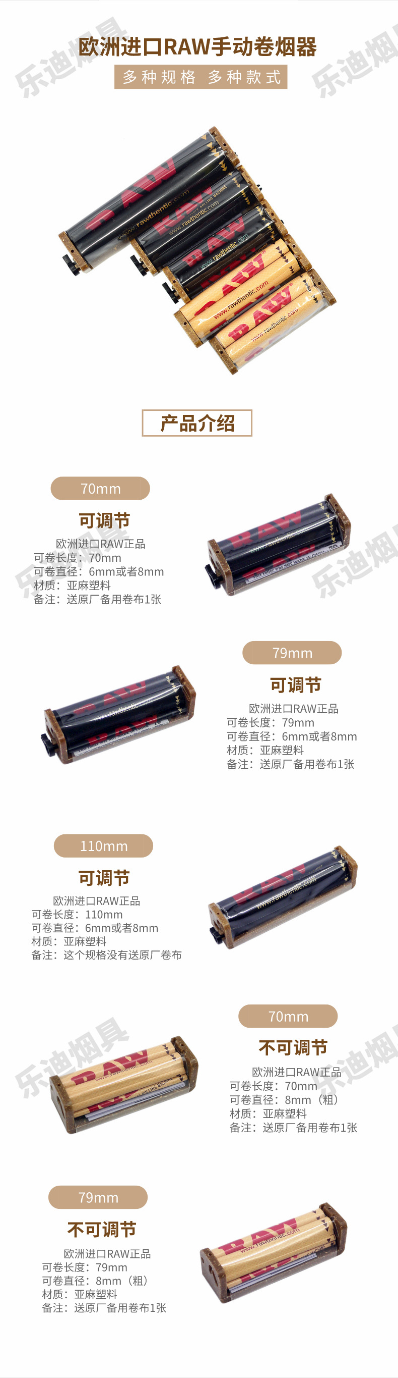 ヨーロッパ輸入 RAW 手動タバコ巻き器 70 79 110 ミリメートル調整可能な 6-8 ミリメートル 2 ウェイローリング
