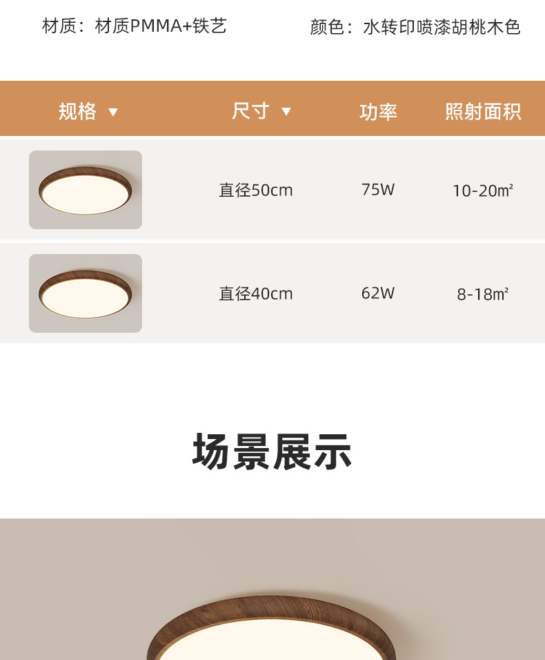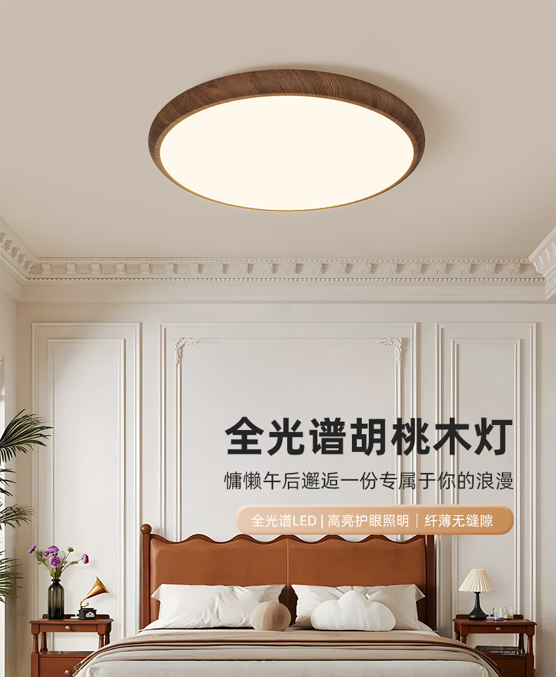 日本式寝室灯全スペクトル超薄胡桃木天井灯シンプルな部屋ベランダ通路保護中山照明