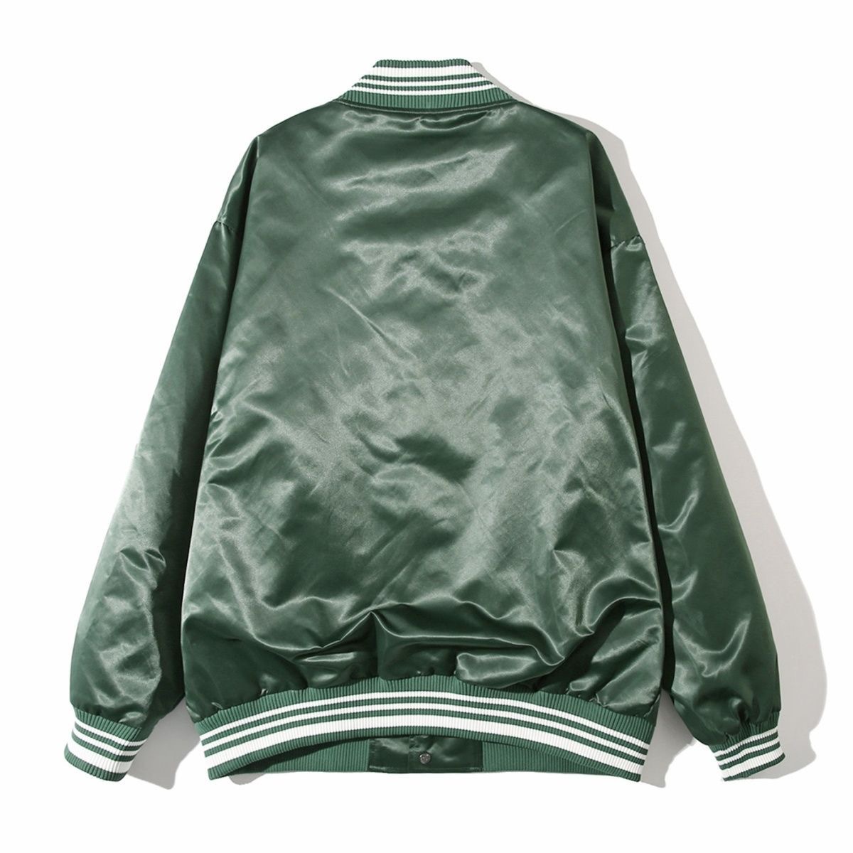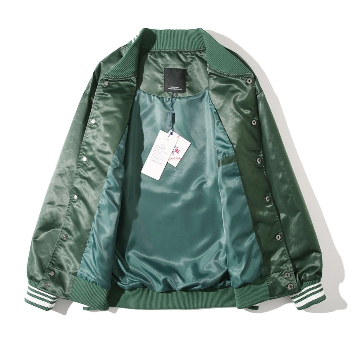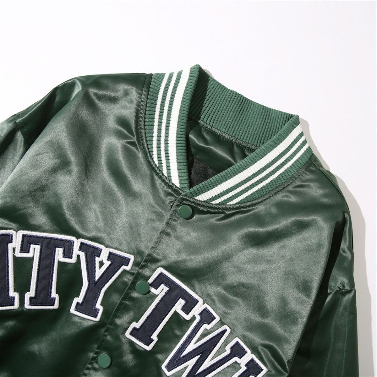 ブレストベースボールジャケットメンズ春秋アメリカンボンバージャケットユニセックスサテン生地イントレンディなワークジャケット
