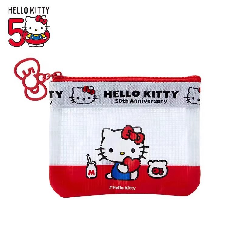 日本ハローキティ限定メッシュバッグかわいい漫画ポーチ透明文房具収納袋