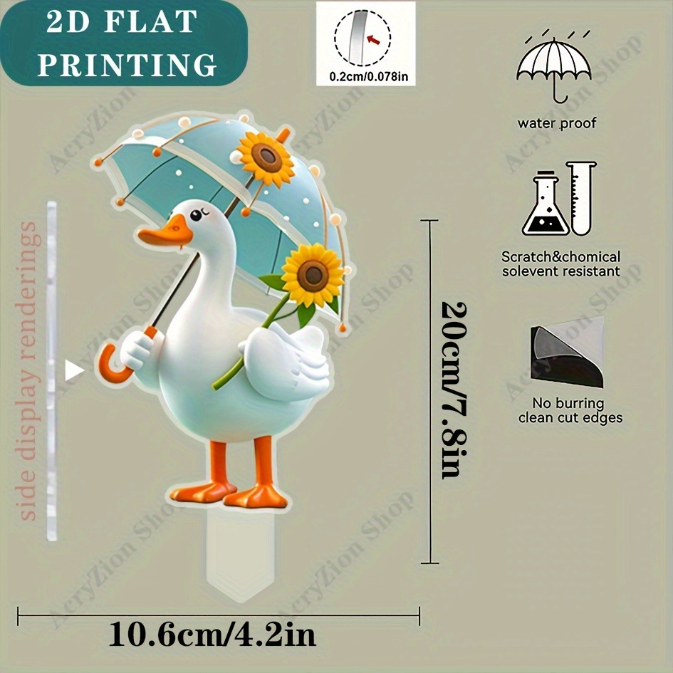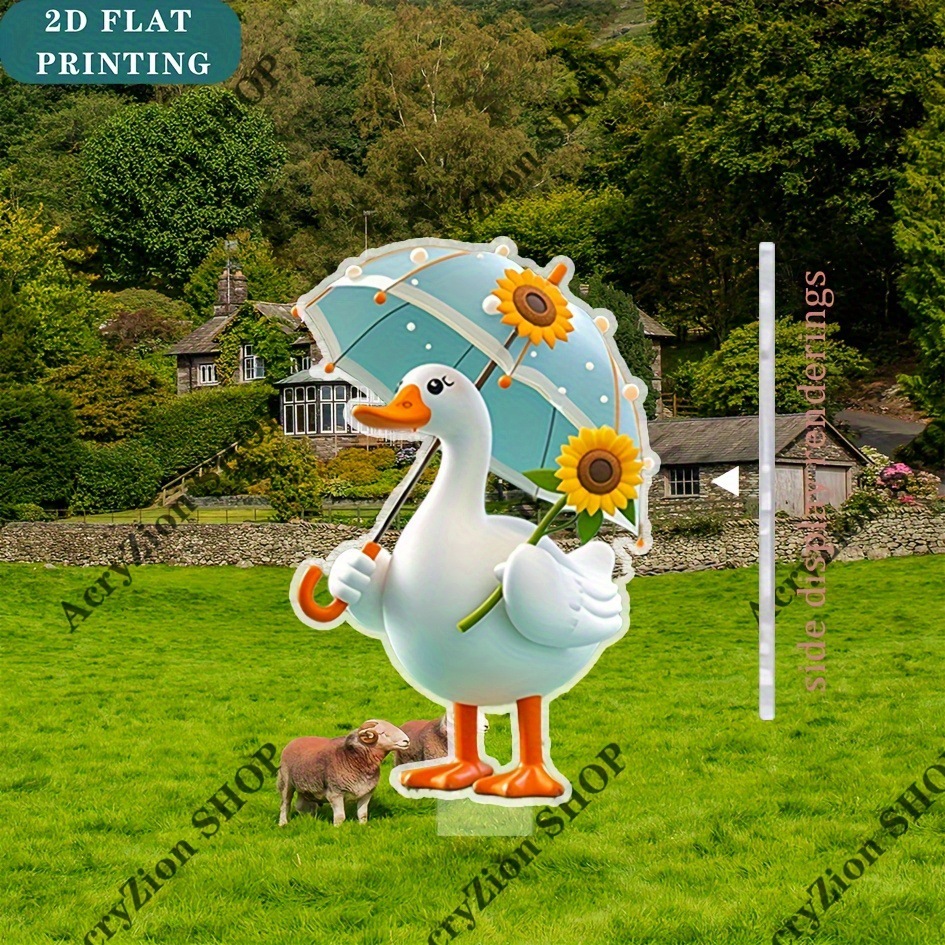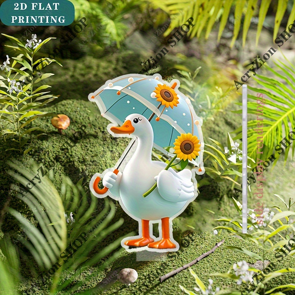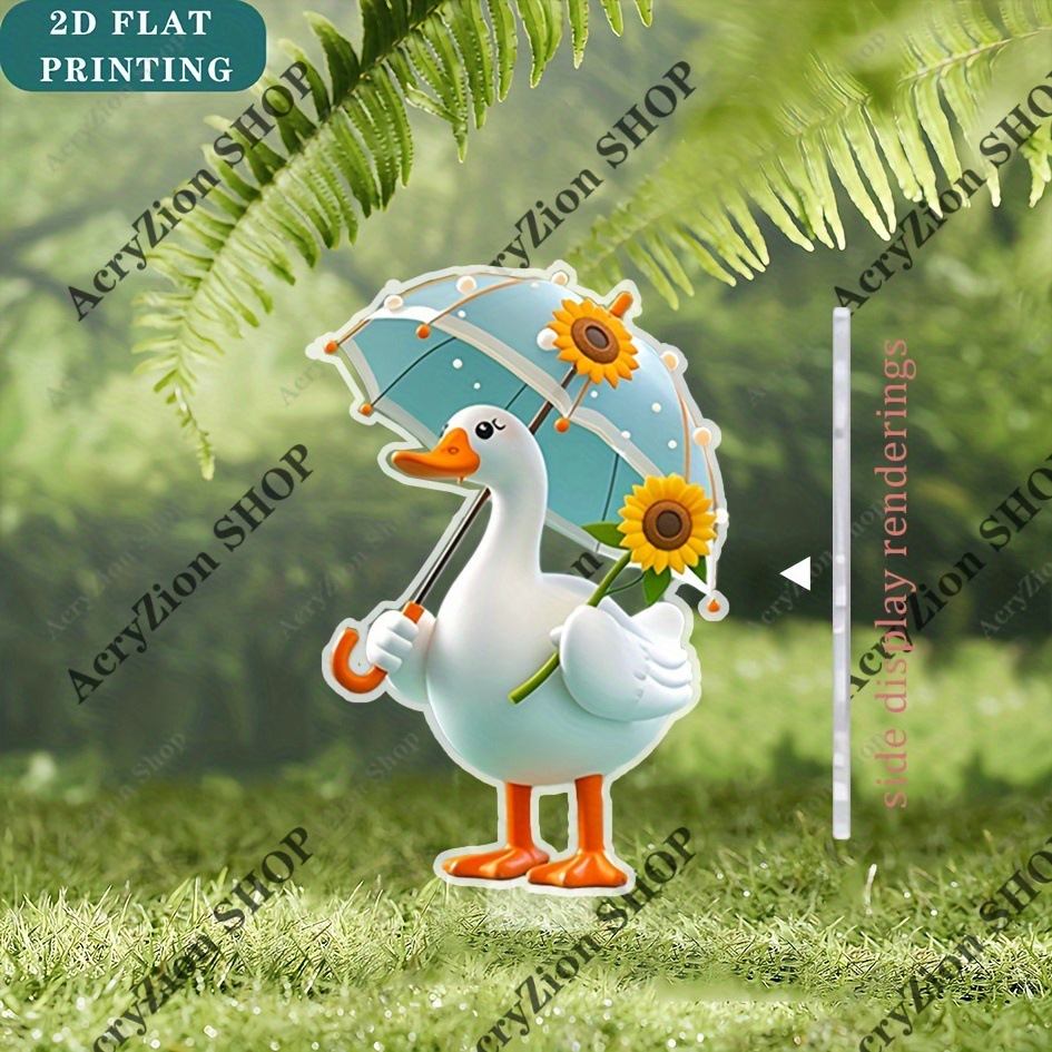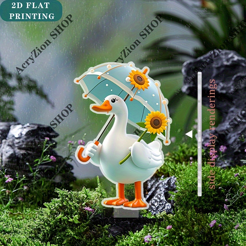 JIT 2D プレーン 魅力的なアヒルの庭の装飾用グラウンドプラグ、青い傘とアングル付き屋外芝生アート