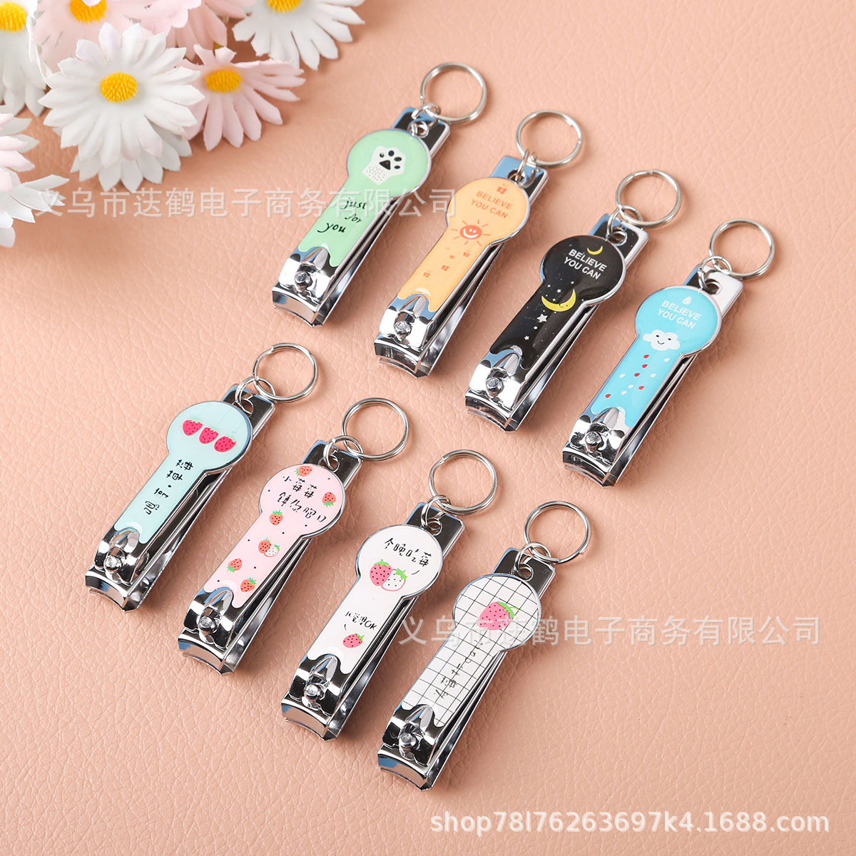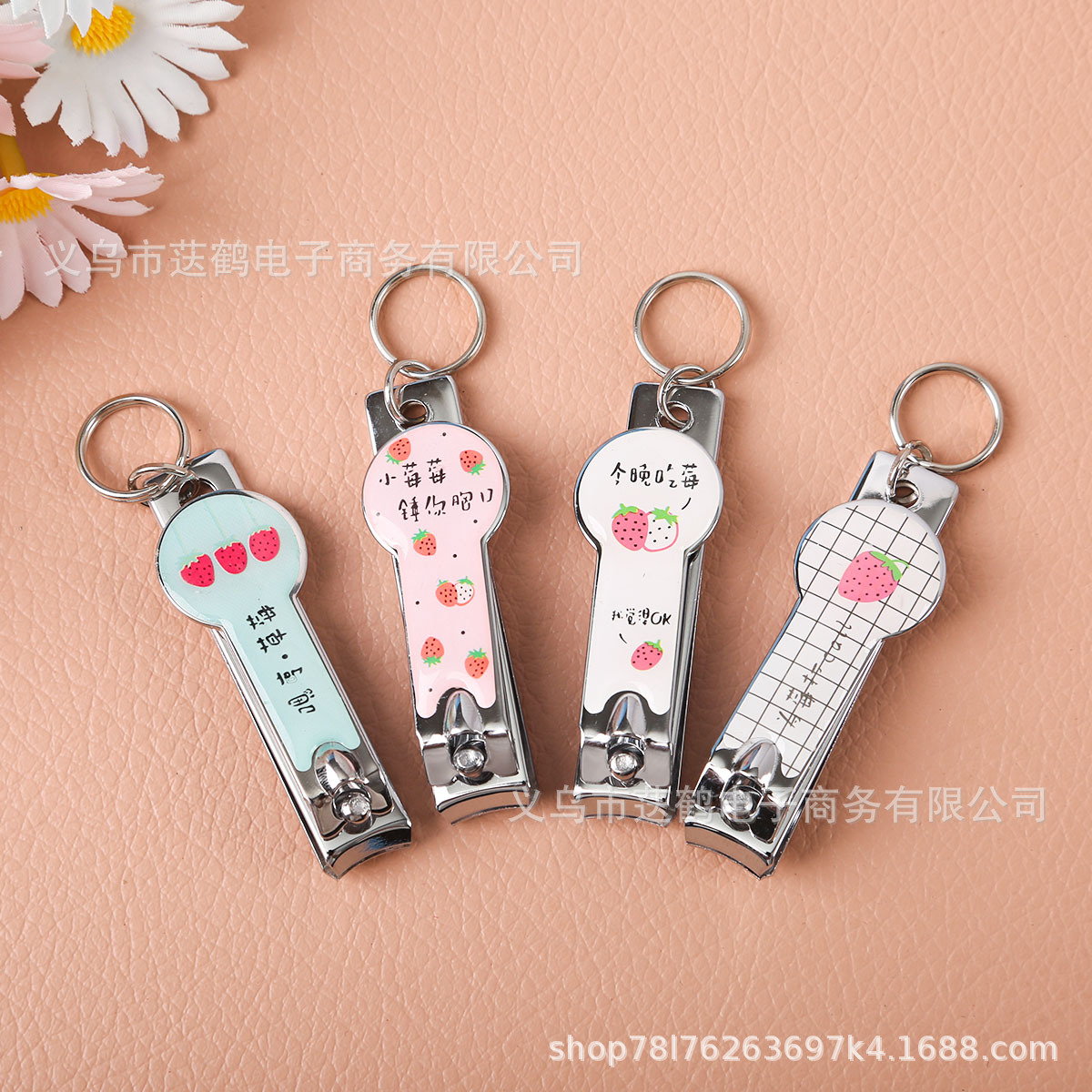可爱卡通钥匙扣指甲钳耳勺简约钥匙套装挂件女生小莓剪指甲刀锁扣