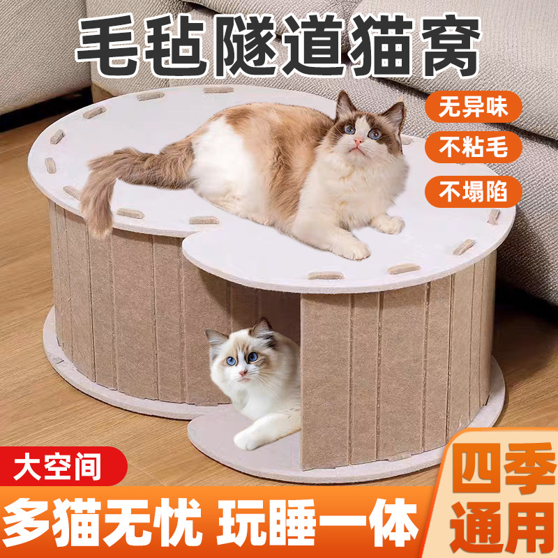 猫の巣、猫の爪とぎボード、一体型トンネル、多出口、穴あき睡眠おもちゃ、欠けにくい、オールシーズン対応のユニバーサルフェルト、爪研ぎ可能
