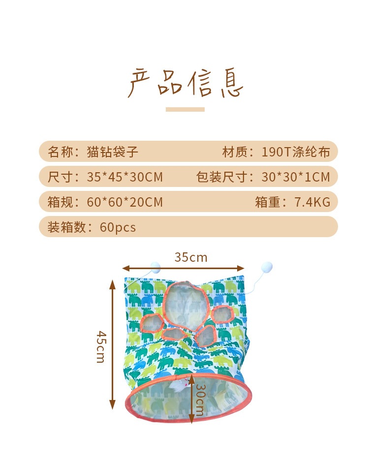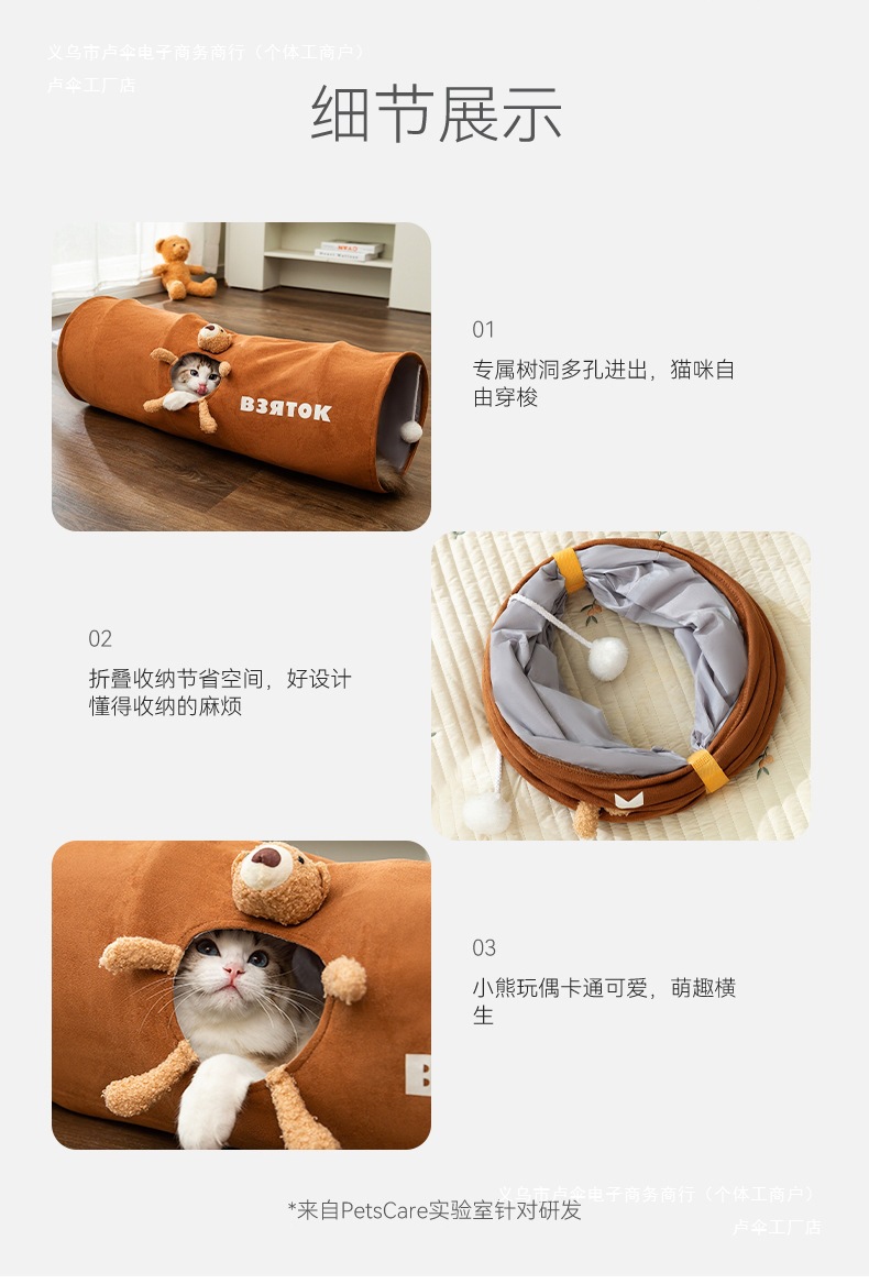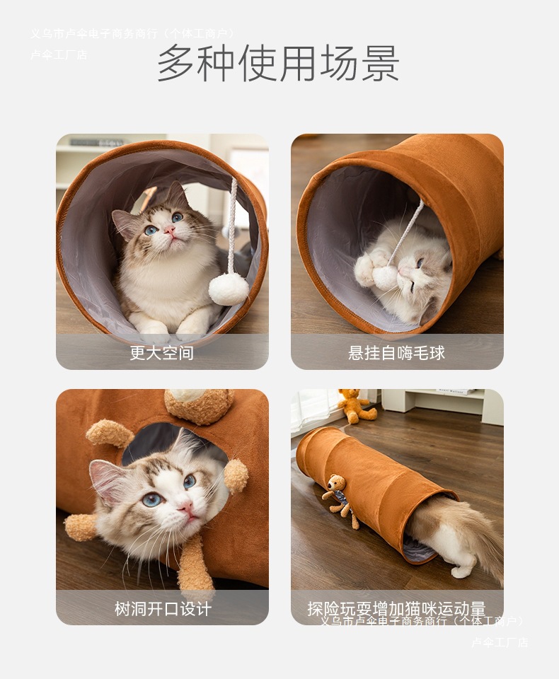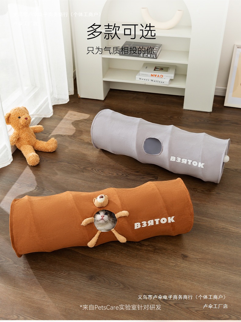 麂皮绒猫隧道 响纸可折叠钻洞滚地龙益智猫玩具自嗨解闷宠物通道