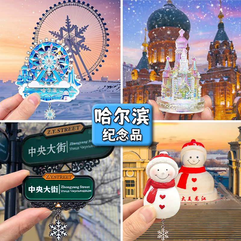 【ハルビン】文創冷蔵庫に氷雪大世界聖ソフィア教会中国都市観光記念品を貼る
