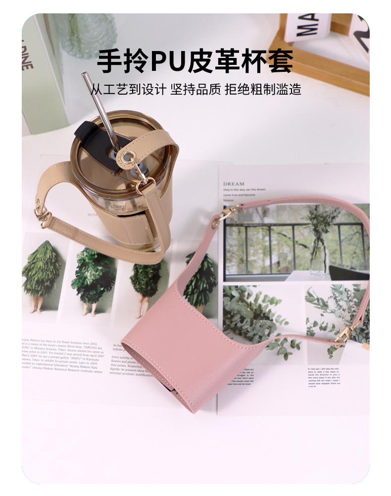 高颜值新款手提杯套奶茶咖啡杯隔热防烫魔术贴手PU便携杯子可定制