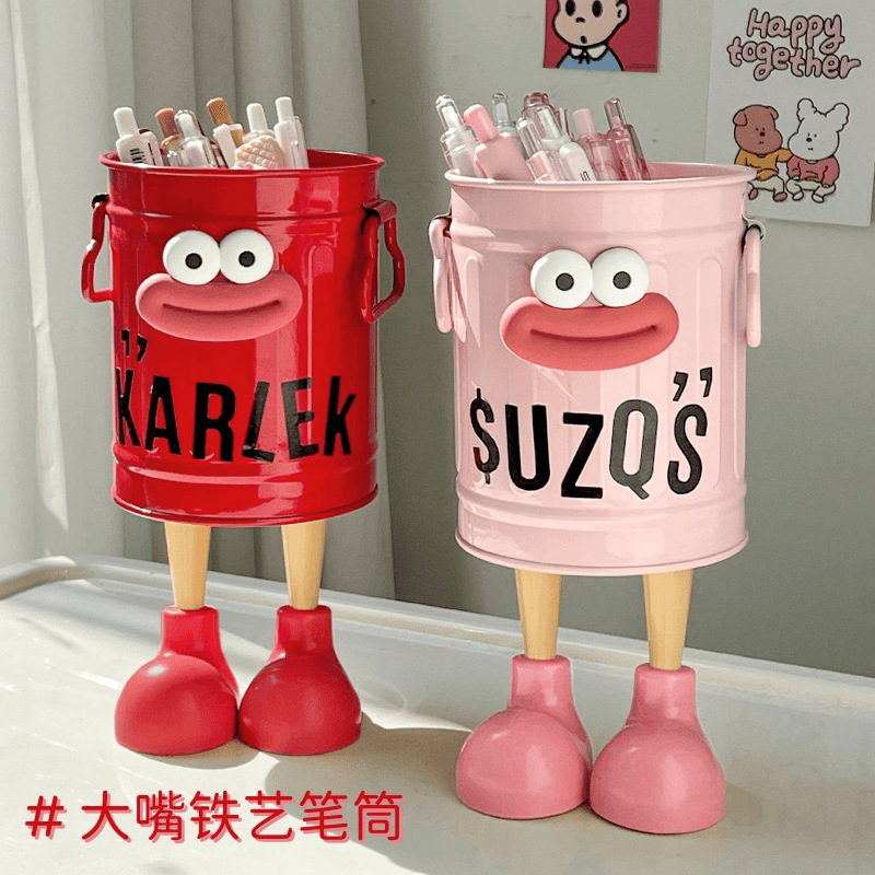 鉄芸のおかしな筆立ての大容量の高い顔の値の学生の筆立てのデスクトップの収納はピンクの大きい足のおかしな筆立てを整理します。