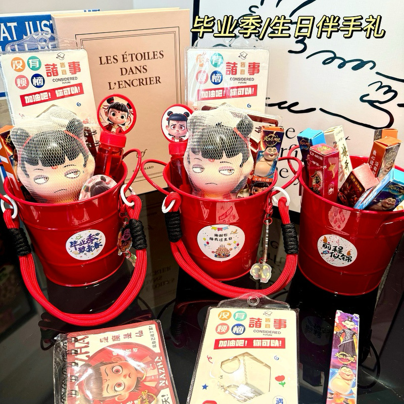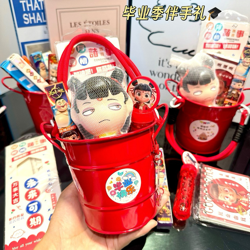 ネザ 8点セット,ネザ 7点セット,ネザ 6点セット,赤いポータブルバケツ,卒業シーズンをテーマにしたステッカー 9 枚