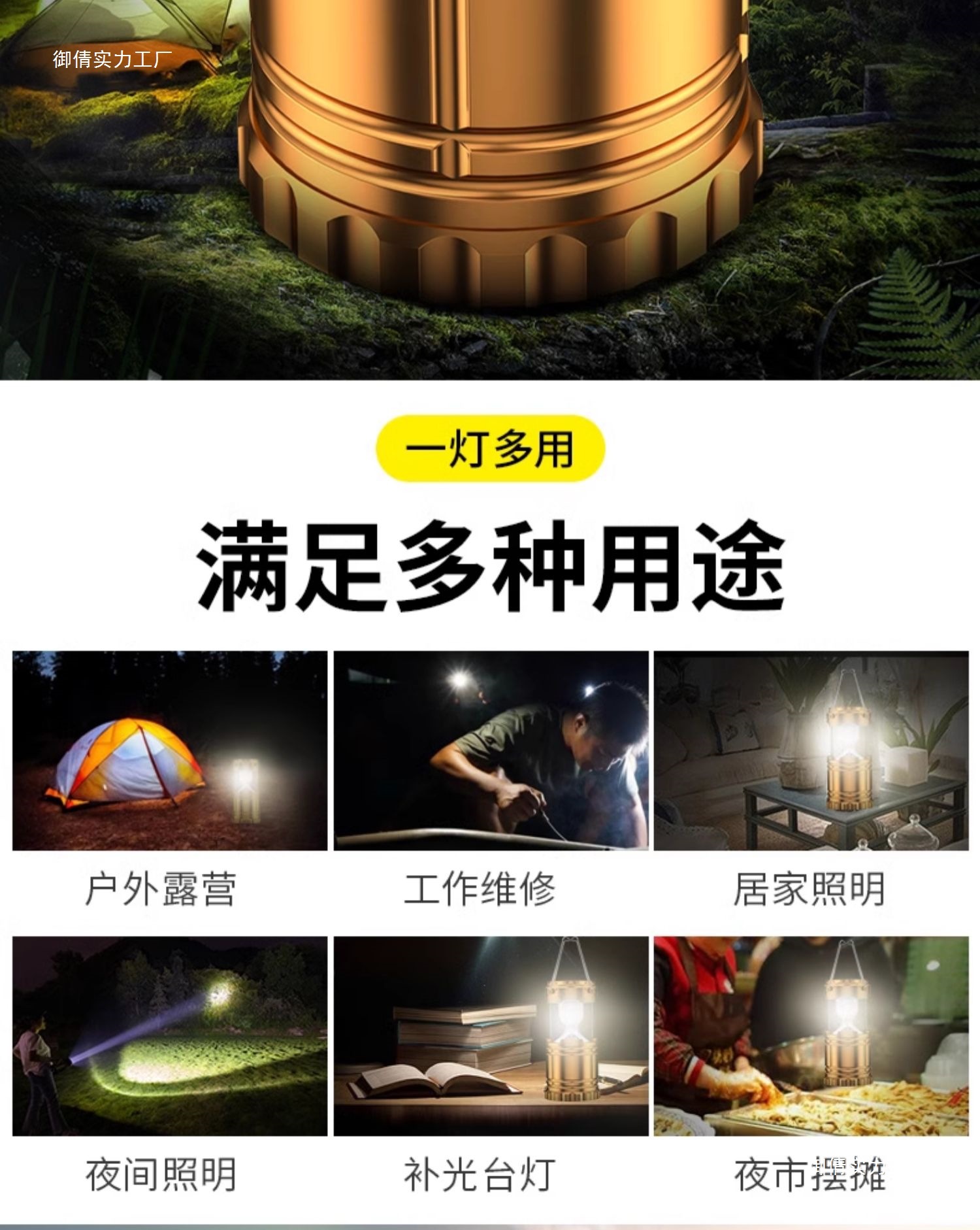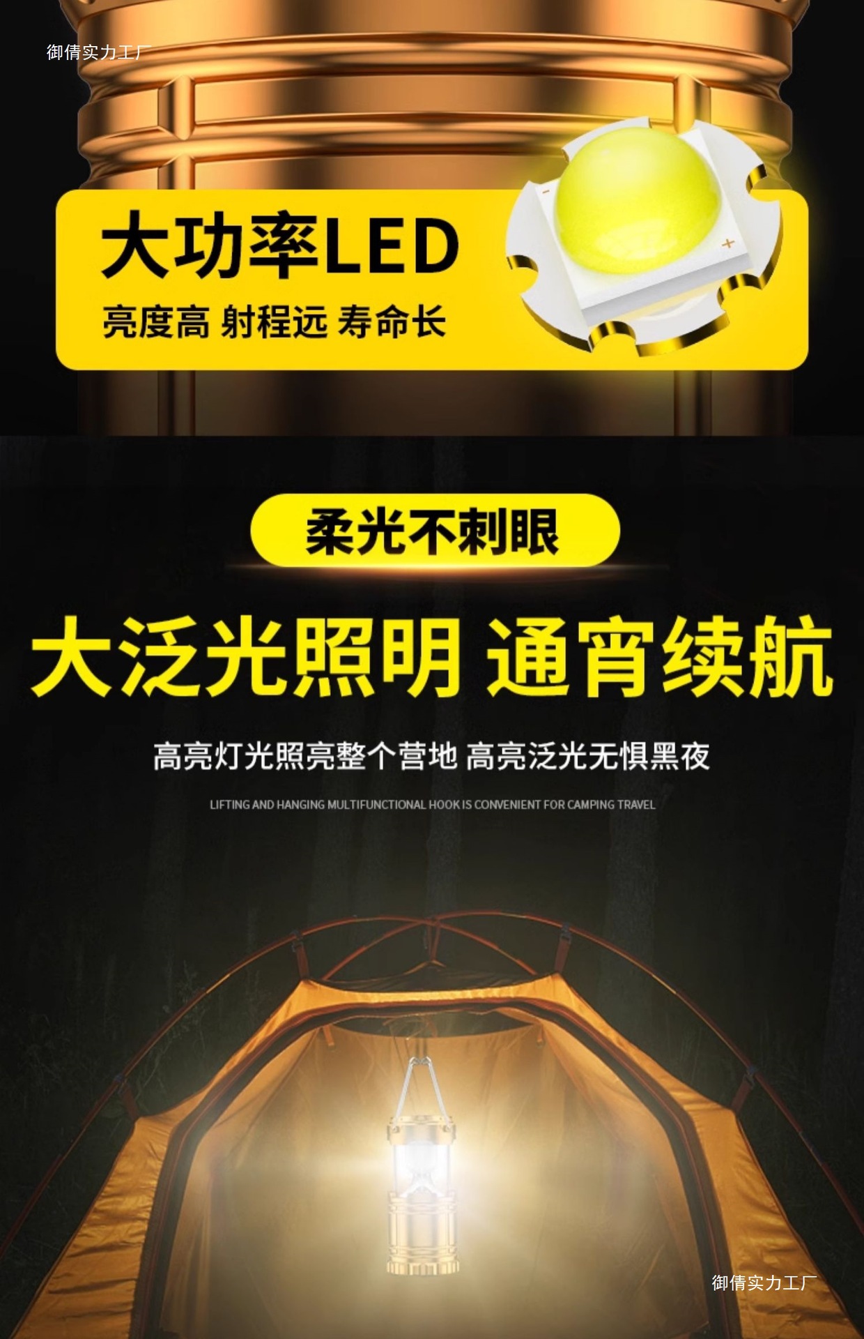 户外露营灯太阳能马灯长续航强光野营灯5800充电应急灯照明手提灯
