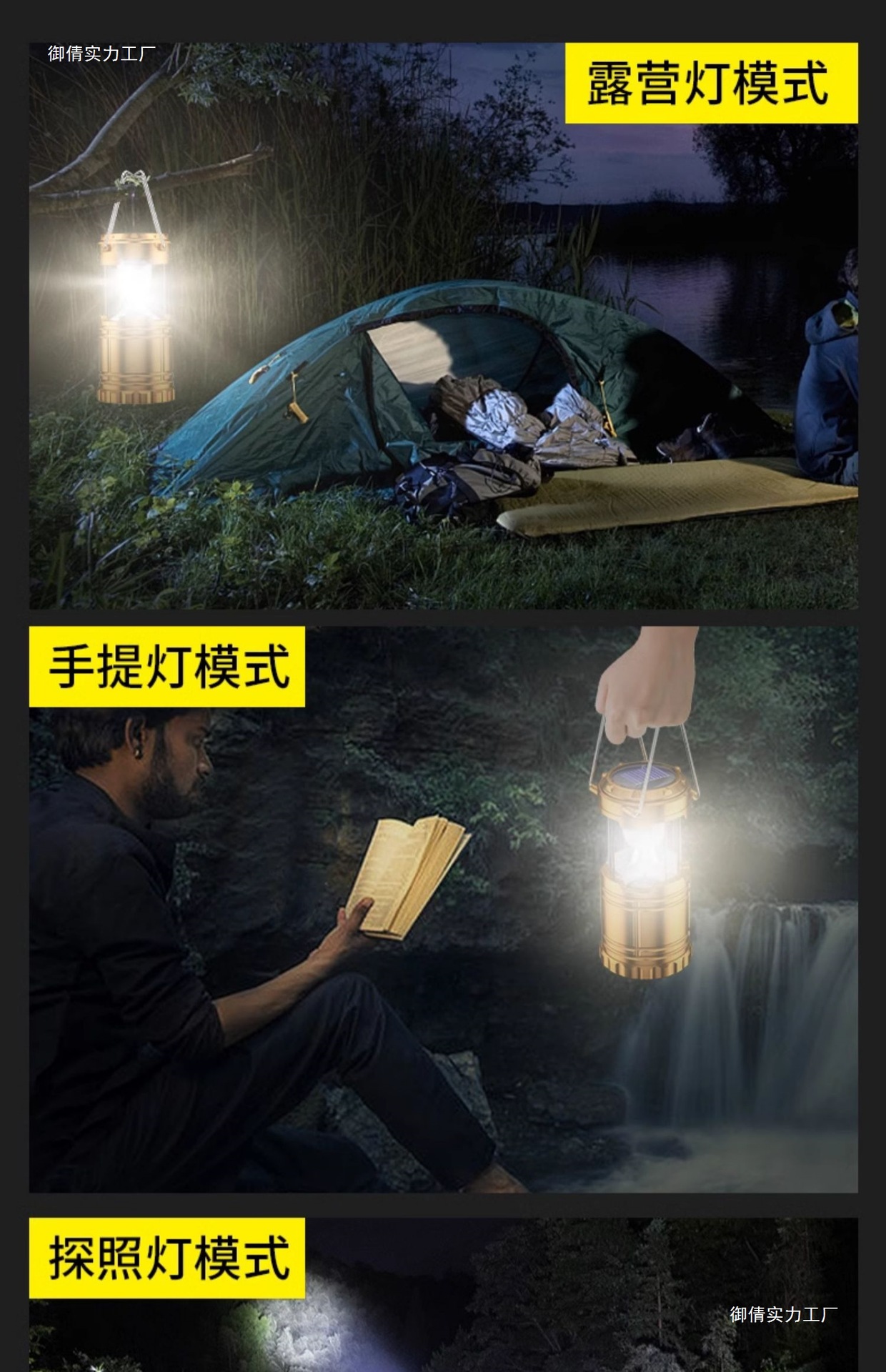 露营灯太阳能马灯手提充电多功能野营家用户外强光照明超亮挂帐篷