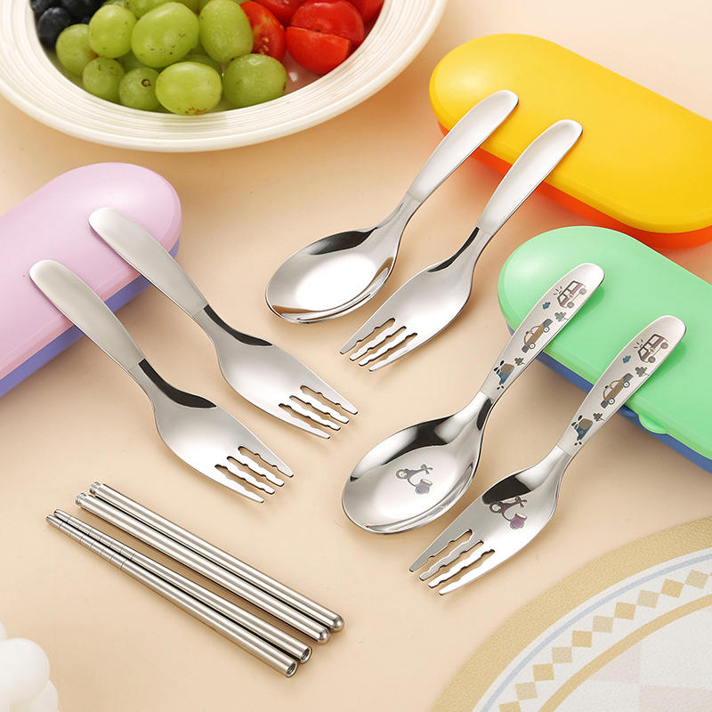 304 ステンレス鋼子供用スプーンとフォーク食器ポータブルセット増粘補助食品ベビースプーンフルーツフォーク