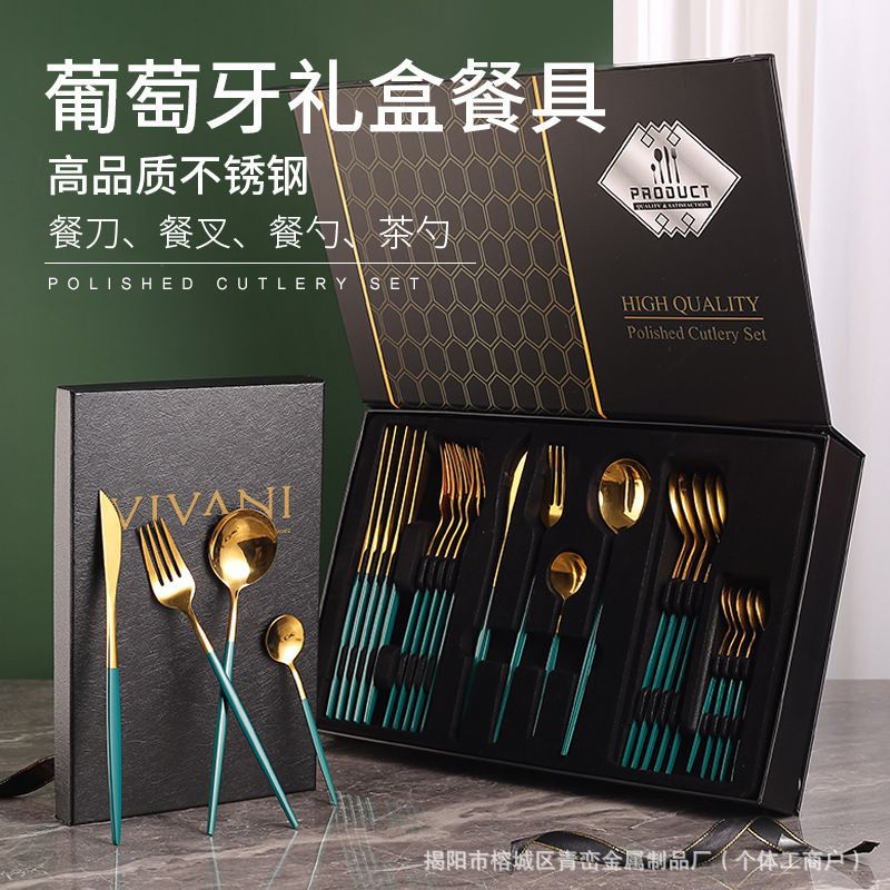 ポルトガル24点セットアマゾンクロスボーダーステーキナイフフォークスプーンステンレスギフトボックスセット工芸食器