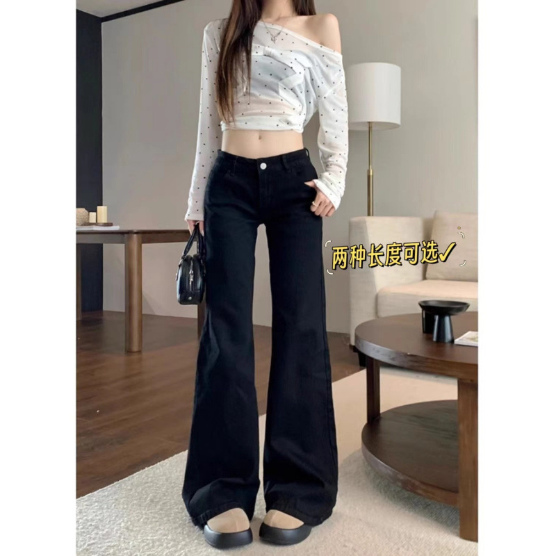 脚の長いスーパーモデルホットガールローウエストスリムフィット馬蹄パンツ女性のための秋 2025 新しい黒タイトなマイクロフレアジーンズ