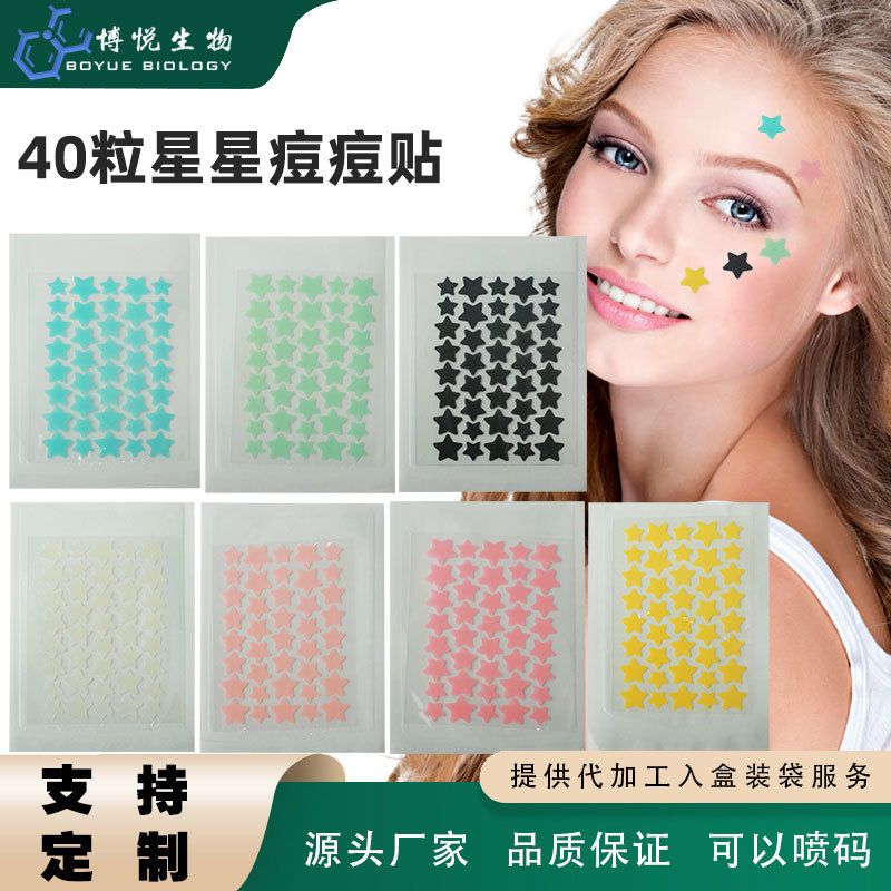 越境販売の人気スキンケア商品、40個入り星型ニキビパッチ、PE素材でニキビの膿を吸い取り、隔離・隠蔽効果、海外貿易卸売