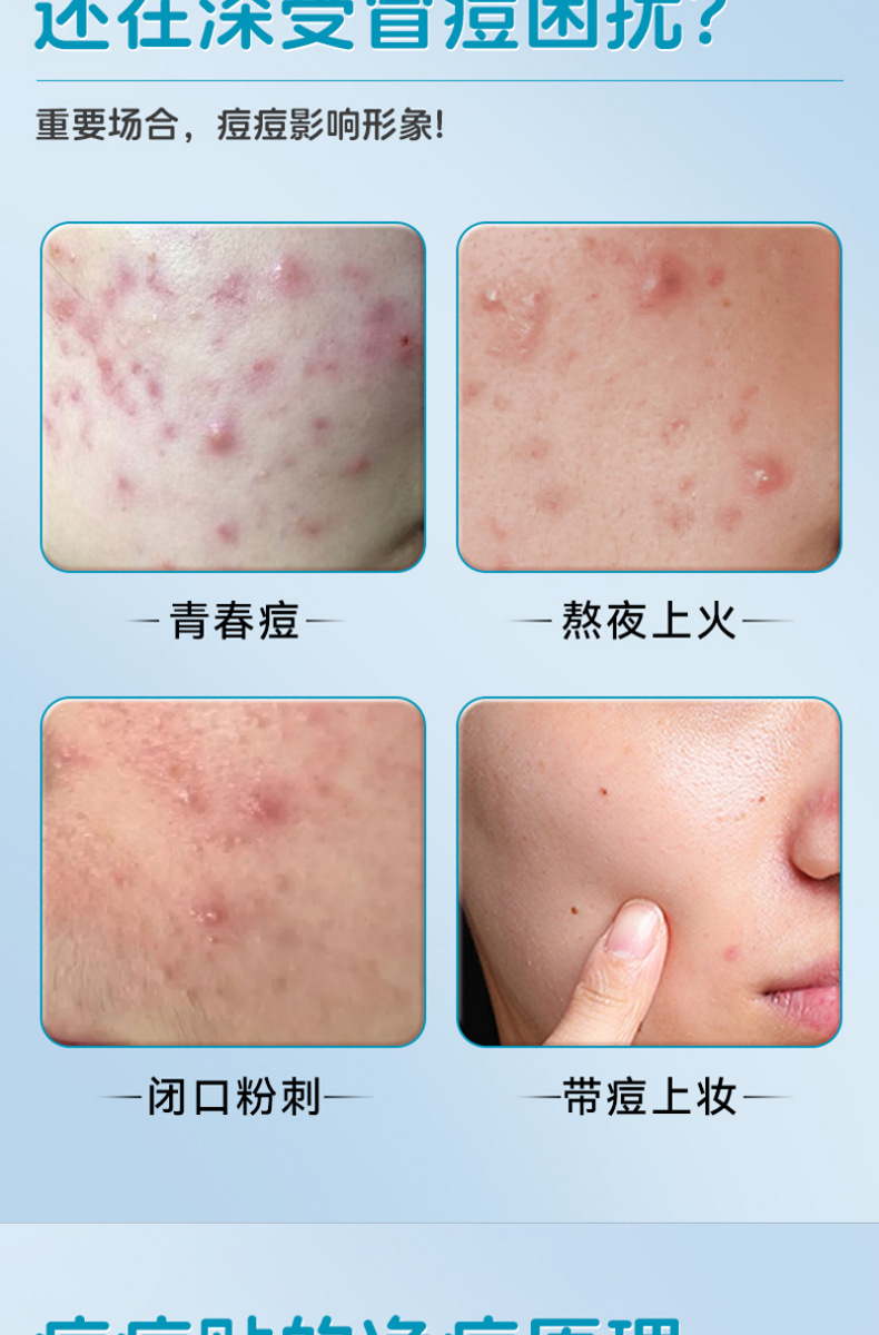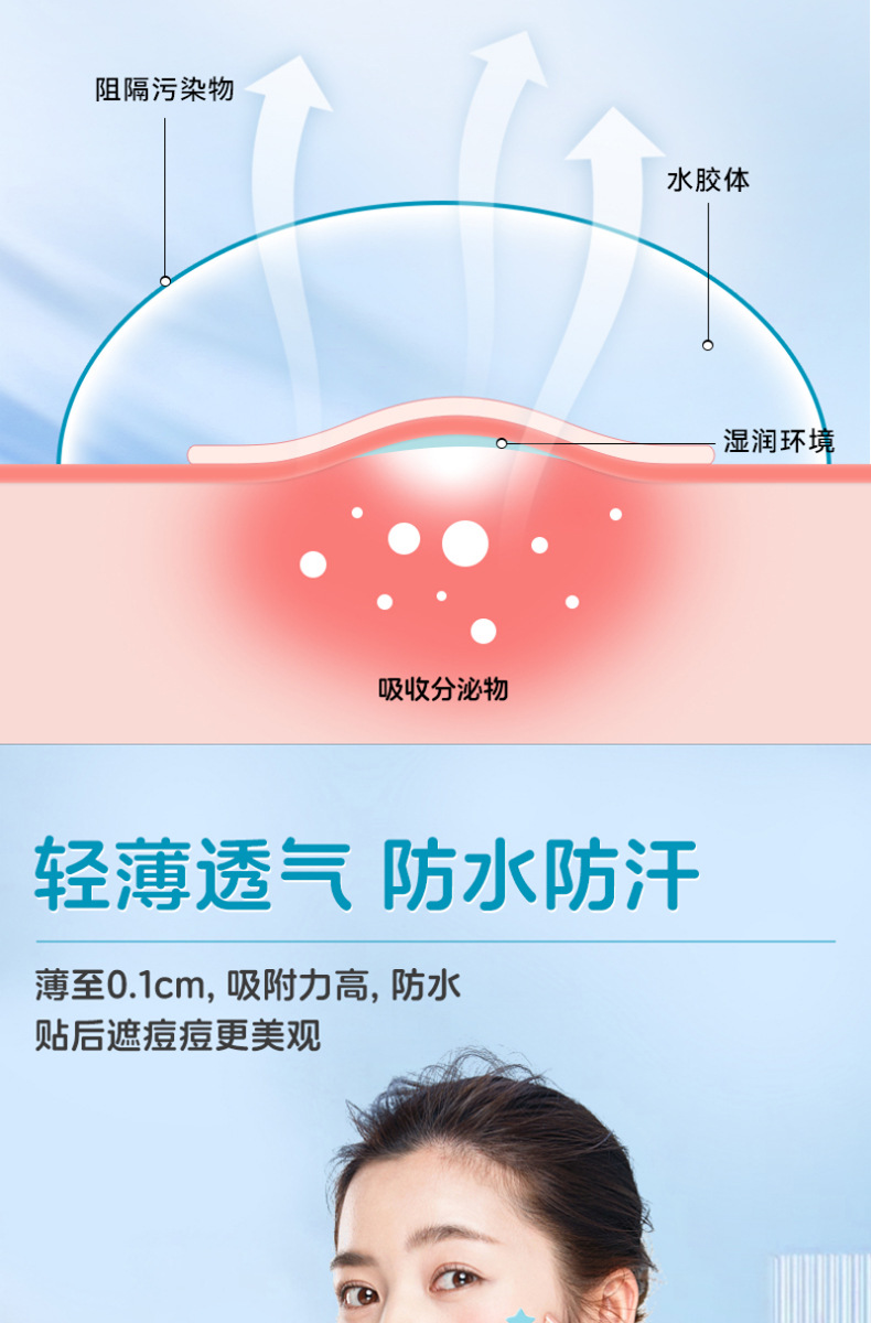 水コロイドのニキビはステルスを貼って傷を隠します。化粧はニキビ印を薄めます。