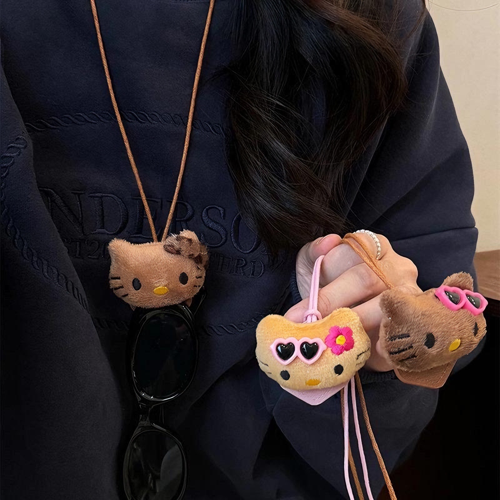かわいい猫の首掛けメガネクリップチェーン女性用ポータブル紛失防止サングラスストラップネックレス装飾セーターチェーンアクセサリー