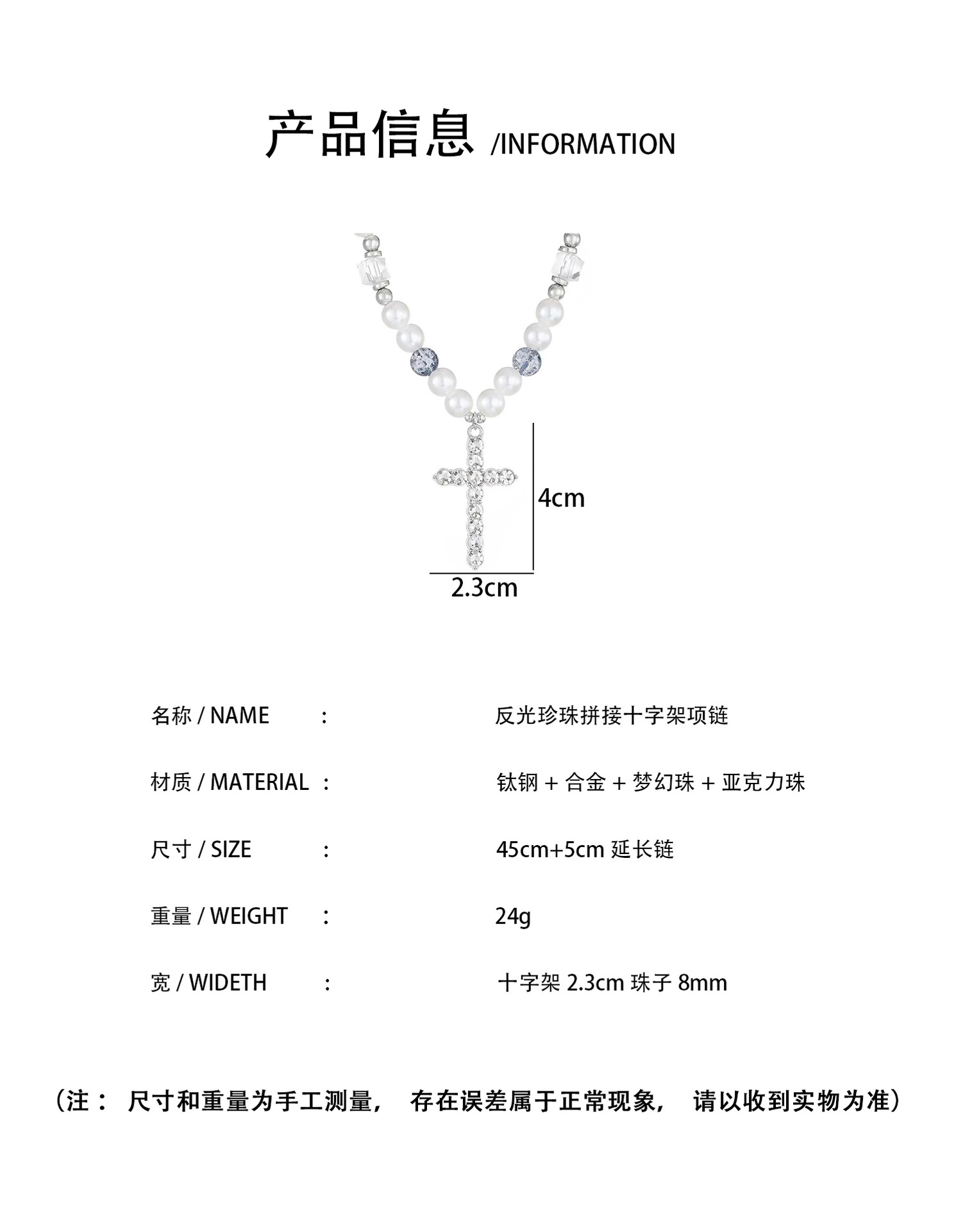 颜色 反光珍珠拼接十字架项链,反光珍珠拼接项链