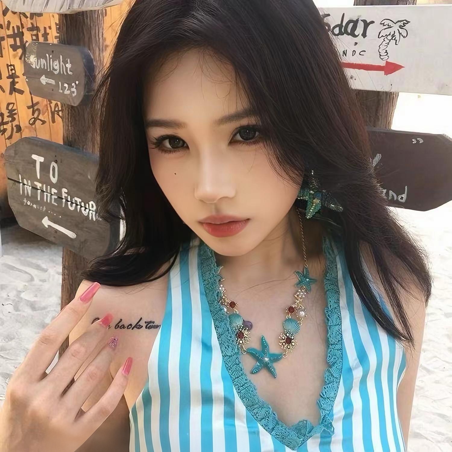 多巴胺蓝色海星贝壳珍珠项链女款新款颈链高级感轻奢小众海边