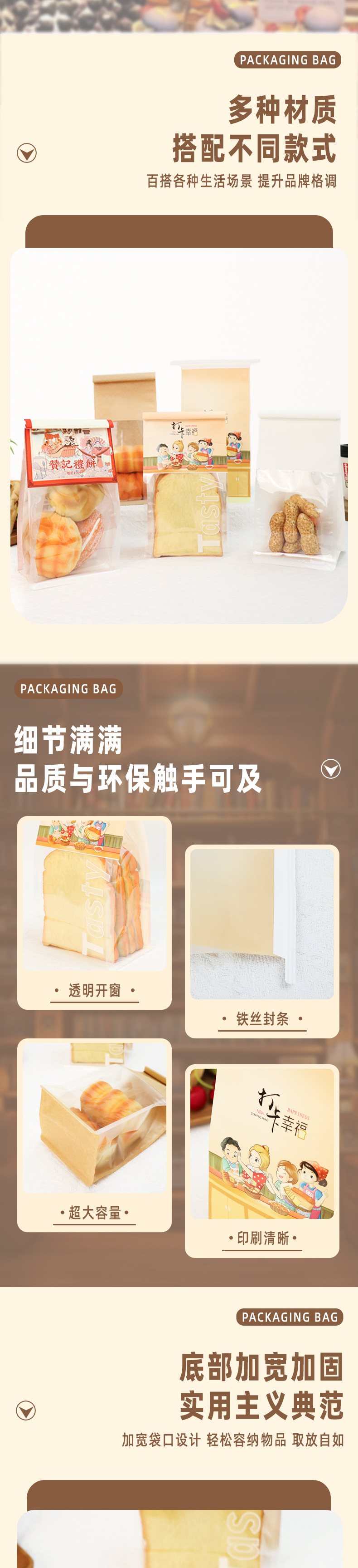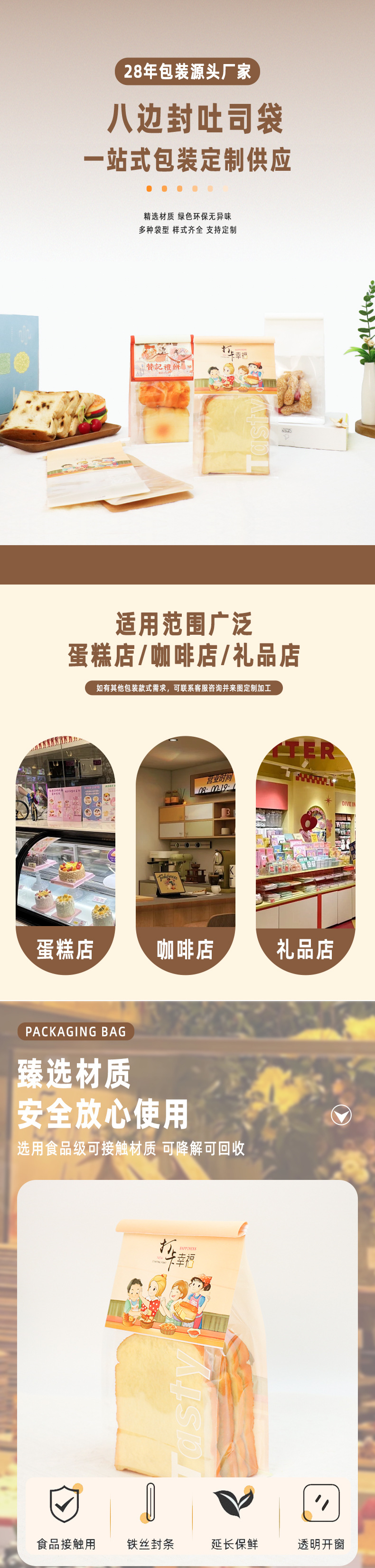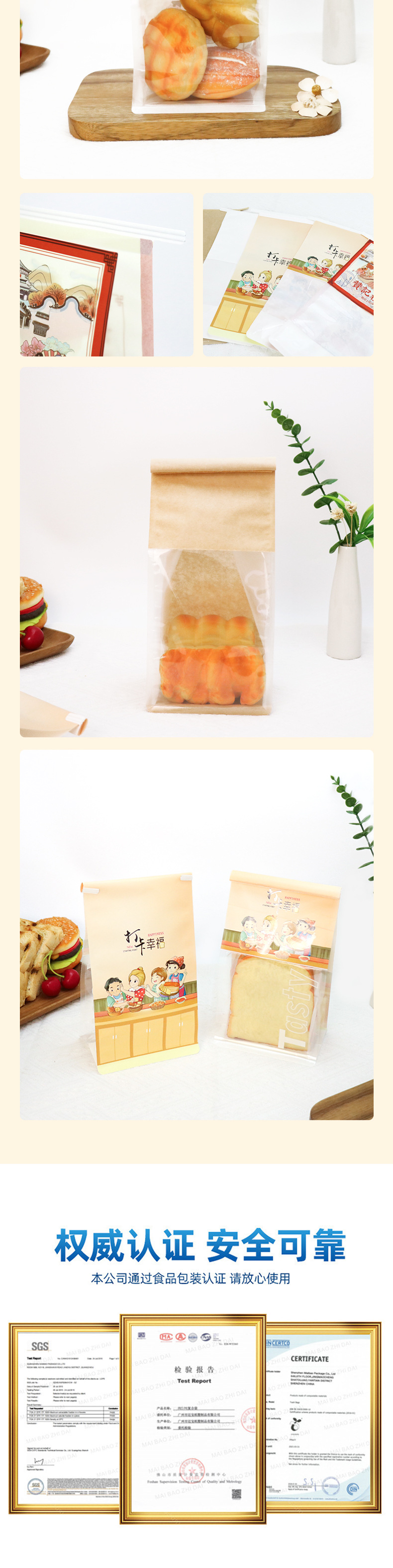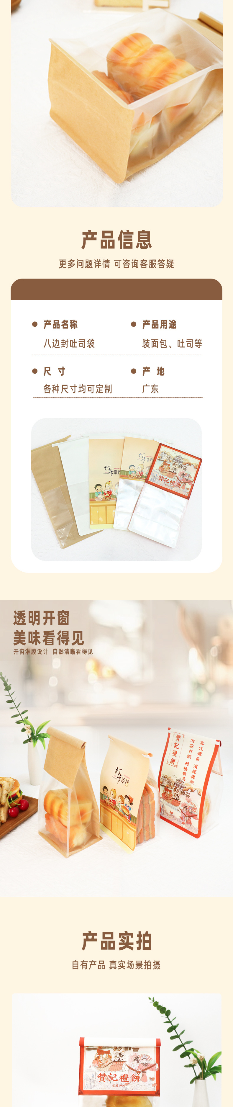 烘焙食品密封袋开窗透明吐司面包白牛皮纸袋铁丝卷边自封口面包袋