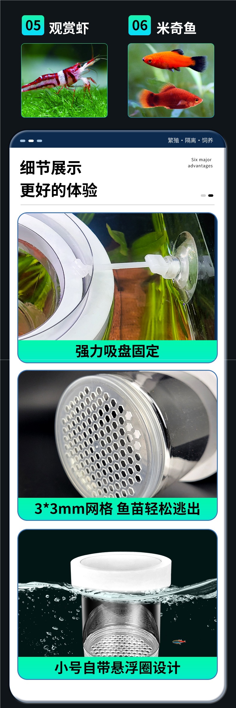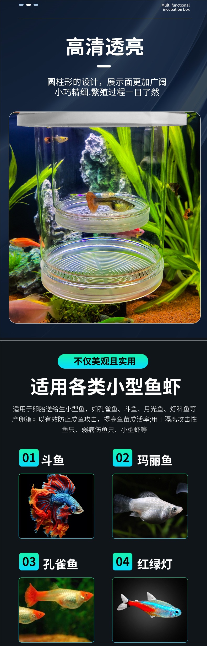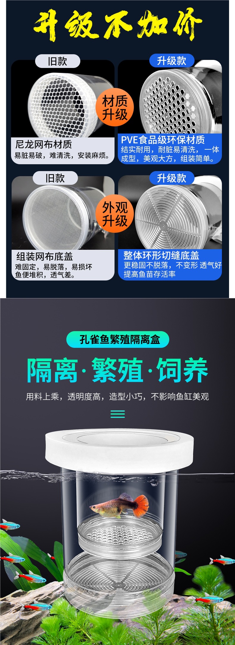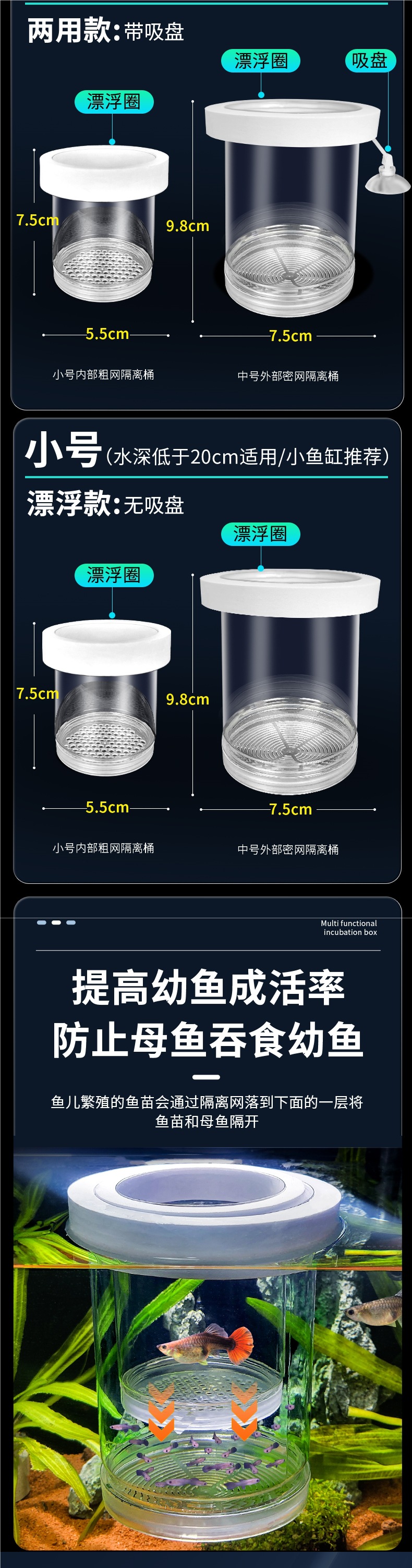水槽隔離ボックス、グッピー繁殖ボックス、フェニックステールゼブラ雌魚産卵室、小型水槽胎生魚稚魚孵化