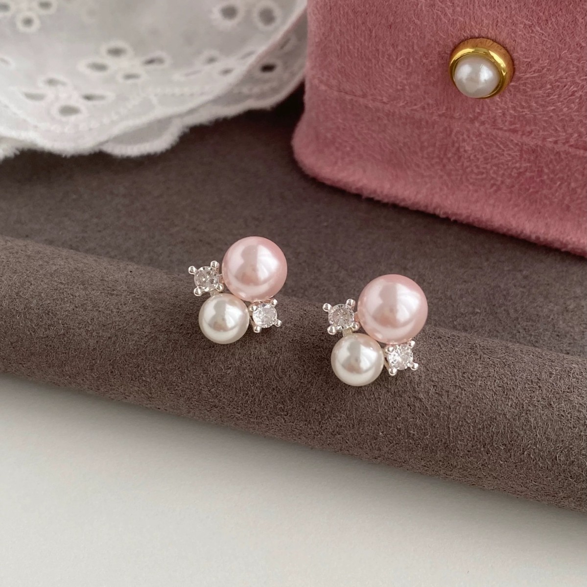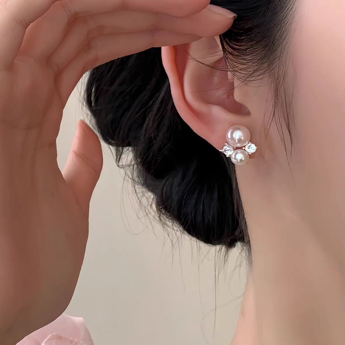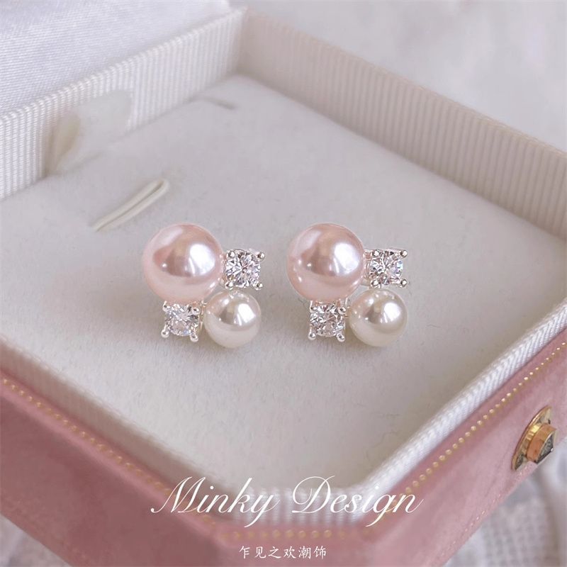 ピンクバブル〜フレンチジェントルパールイヤリング2025新しい甘くて絶妙な気質イヤリングハイエンドイヤリング