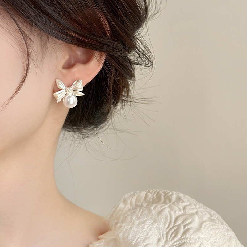 轻奢高级感气质珍珠蝴蝶结耳环女2025新款爆款独特耳饰耳钉