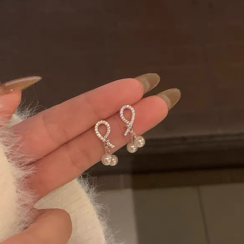 日本と韓国のライトラグジュアリーダイヤモンドロングタッセルリネングレーパールイヤリングレディースニッチデザインイヤリングハイエンドイヤリング