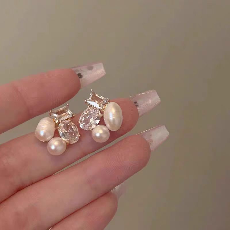 フレンチジェントルピンクパールジルコンイヤリング、多用途、軽い高級感、ハイエンドイヤリング、女性用の絶妙でエレガントなイヤリング