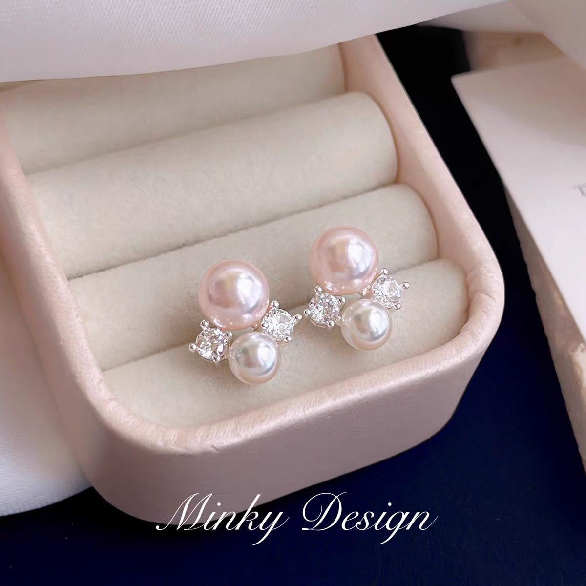 925銀針施家桜花粉マントー真珠ピアス女性イヤリングデザイン高級感イヤリングイヤリング新