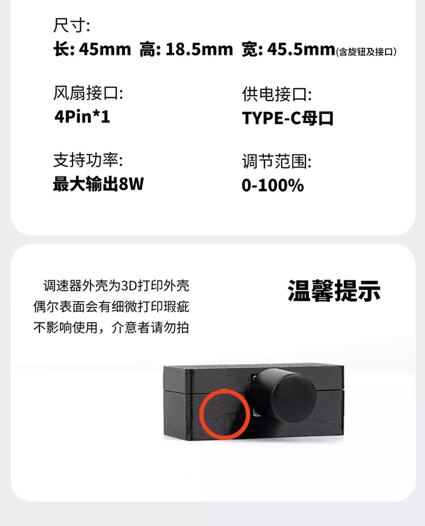 PWM低圧調速機小4pin B3 4線ファン調速TYPE-C USB給電DIY水冷散