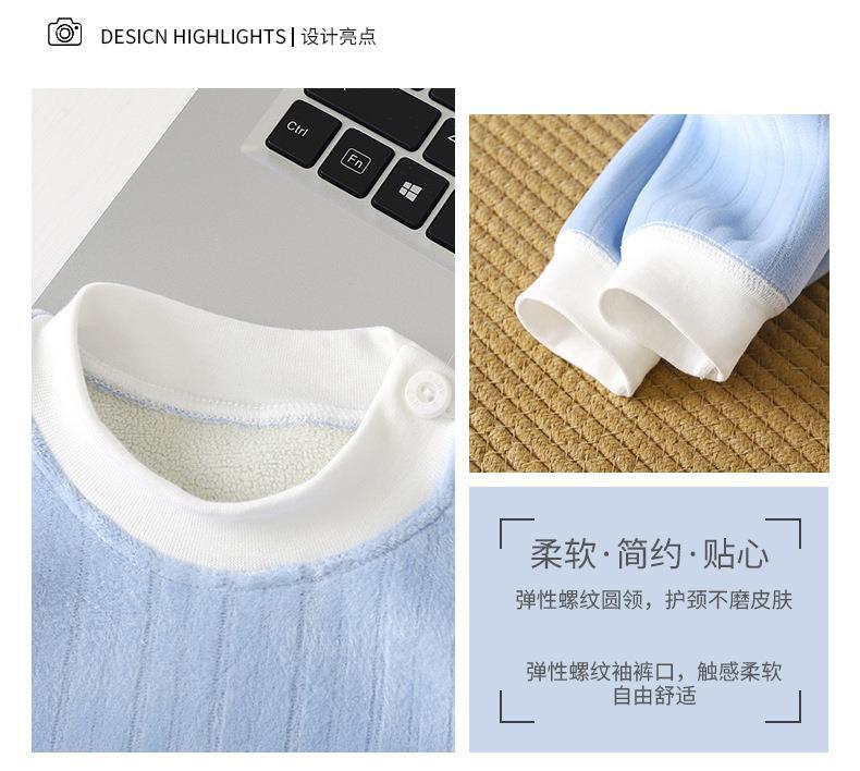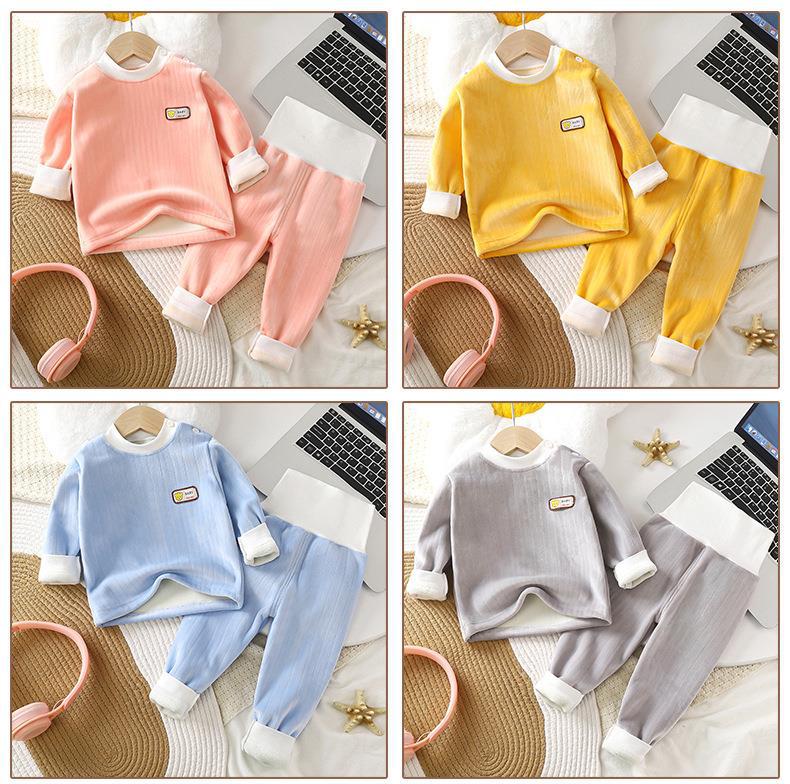 ベビー子供用サーマル下着セット服秋と冬のベビーホーム服プラスベルベット秋服男の子と女の子用秋のズボン厚みのある