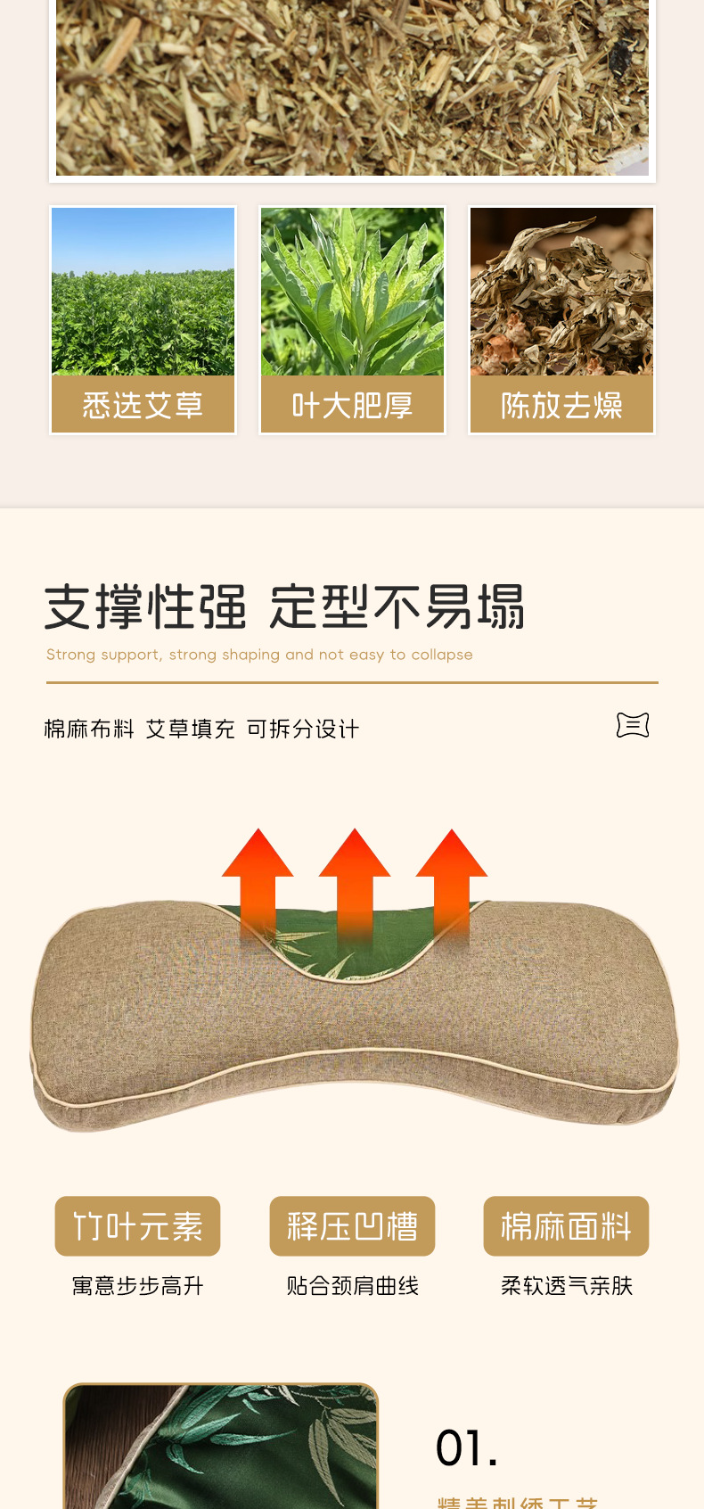 艾草枕家庭用頚椎枕灸肩周枕睡眠枕首枕節高昇枕新商品卸売り