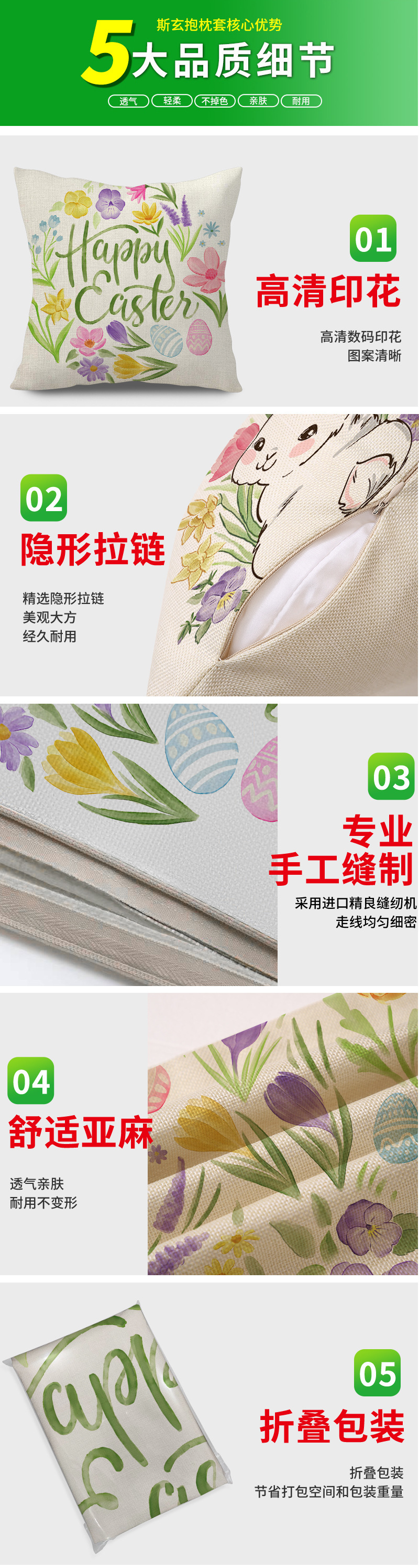 クロスボーダーイースタープリント枕カバーアマゾンホリデーパーティー装飾ソファクッション寝室のベッドサイド枕カバー