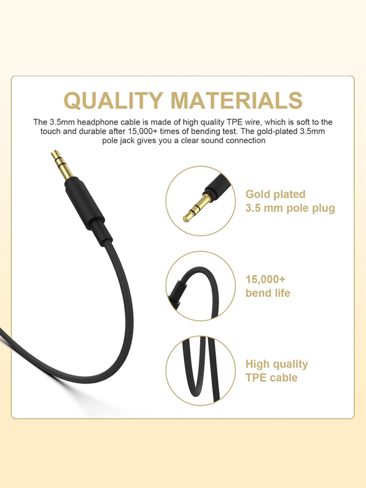 工場卸売りソロオーディオケーブルはbeatsイヤホンケーブルstudioレコーダー3.5mmツインケーブルを適用する