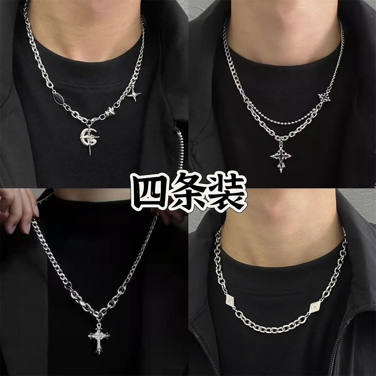 クロスチタン鋼非退色ネックレスメンズライトラグジュアリーヒップホップパンクキューバチェーン多用途ハイエンド鎖骨チェーントレンド