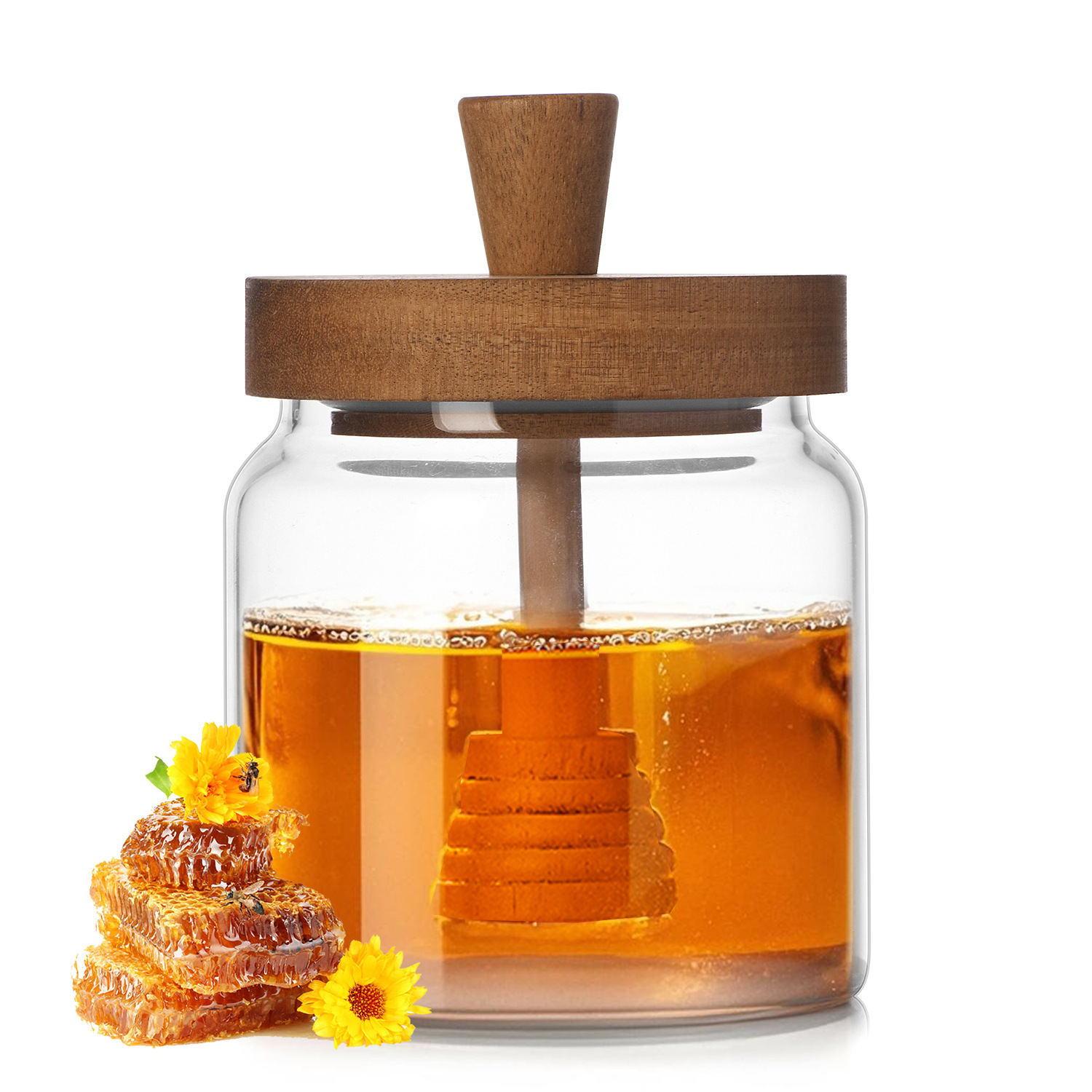 蜂蜜貯蔵瓶高ホウ素シリコンガラス密封缶瓶木蓋攪拌棒透明瓶厨房収納貯蔵タンク
