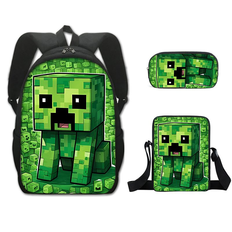 跨境我的世界动漫书包游戏周边三件套背包书包小学生大容量笔袋