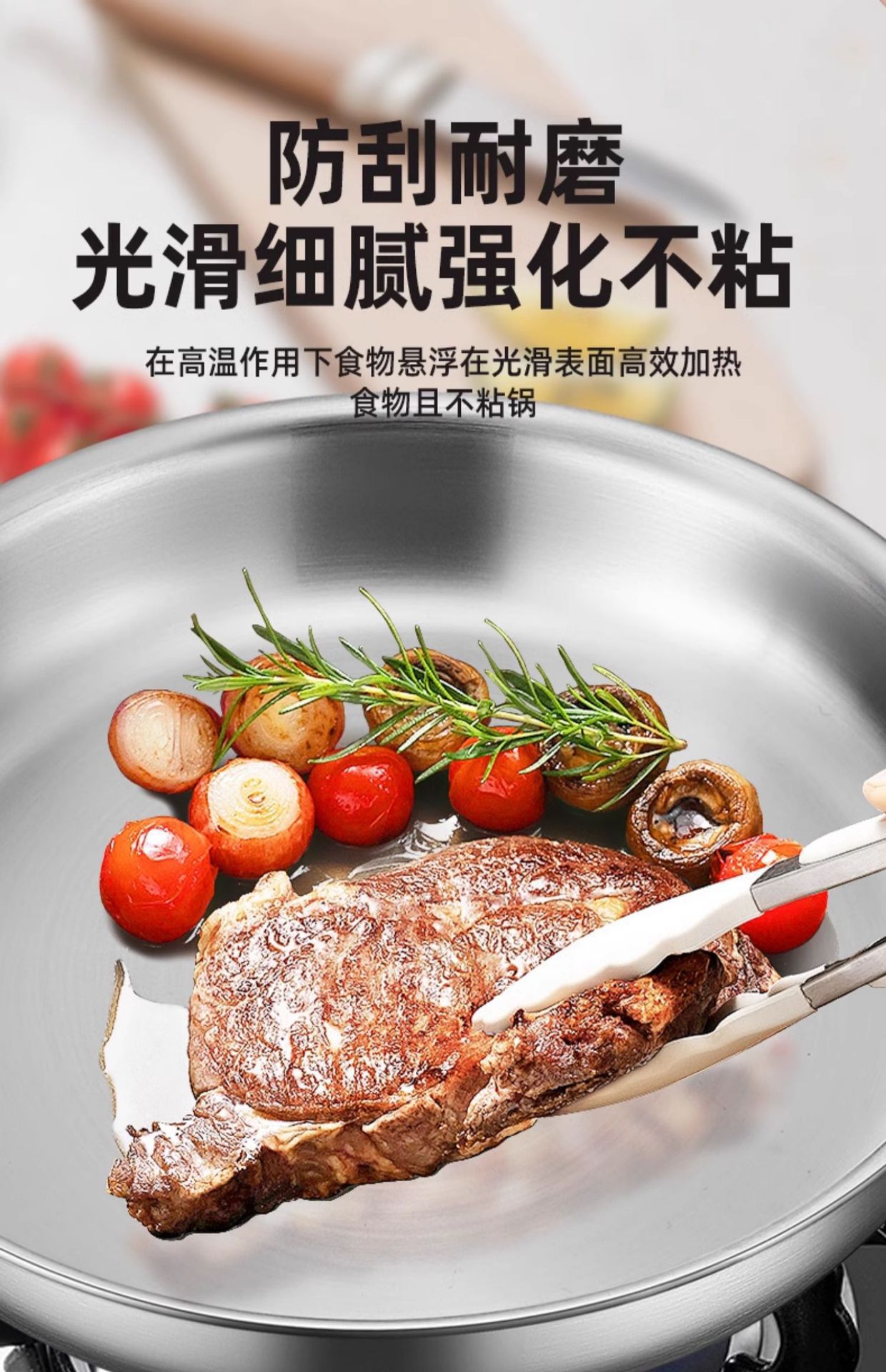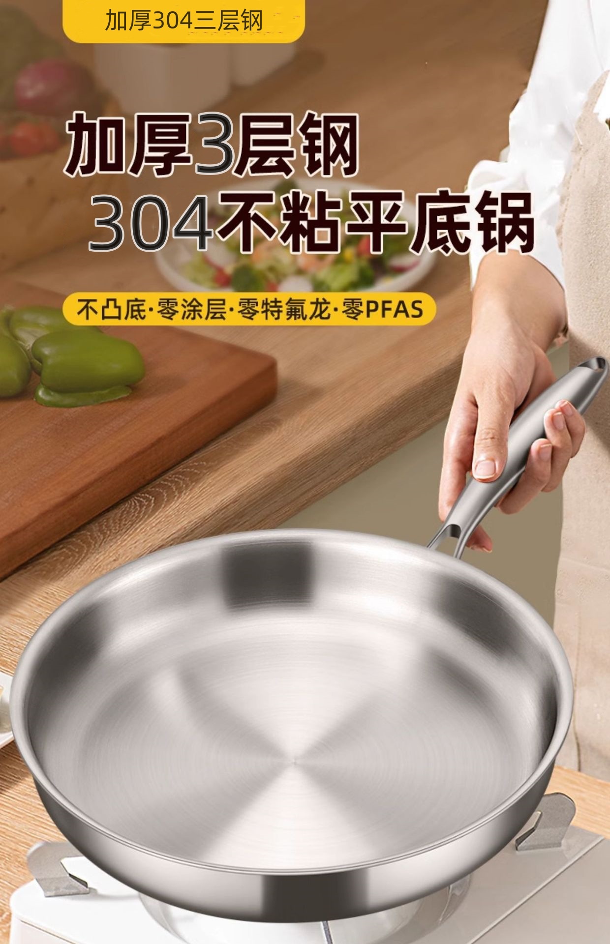 304 三層鋼ノンスティックフライパン家庭用ガスストーブ電磁調理器特別な平底フライパン蓋付き