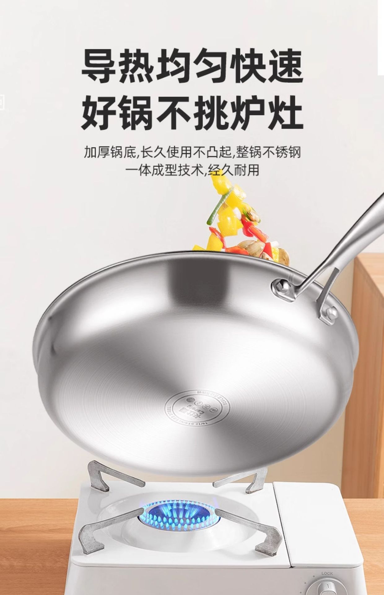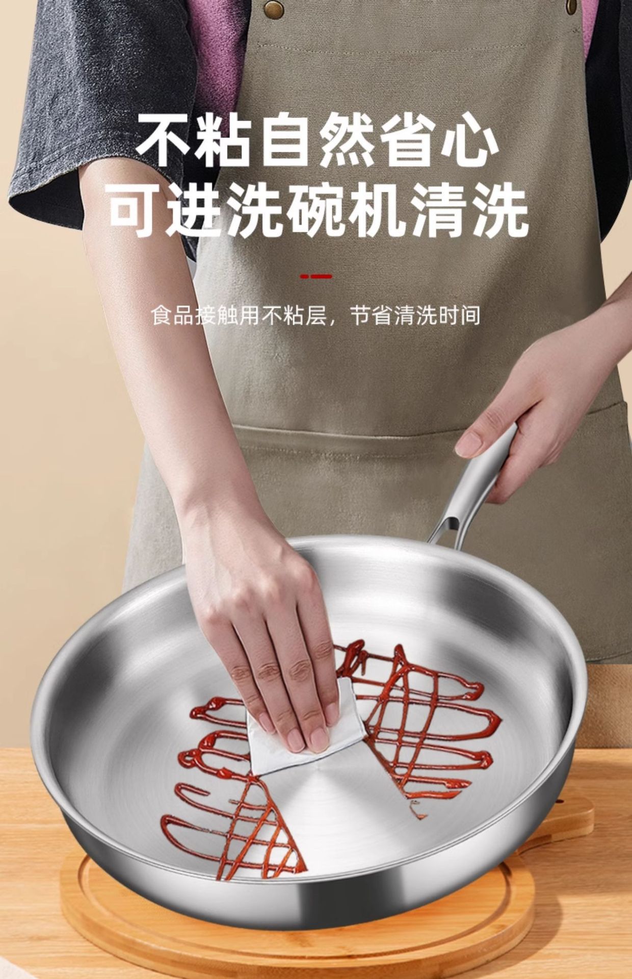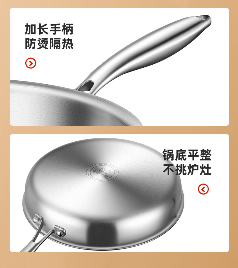 316L不锈钢双面屏蜂窝不粘锅炒菜锅家用无涂层平底炒锅燃气电磁炉