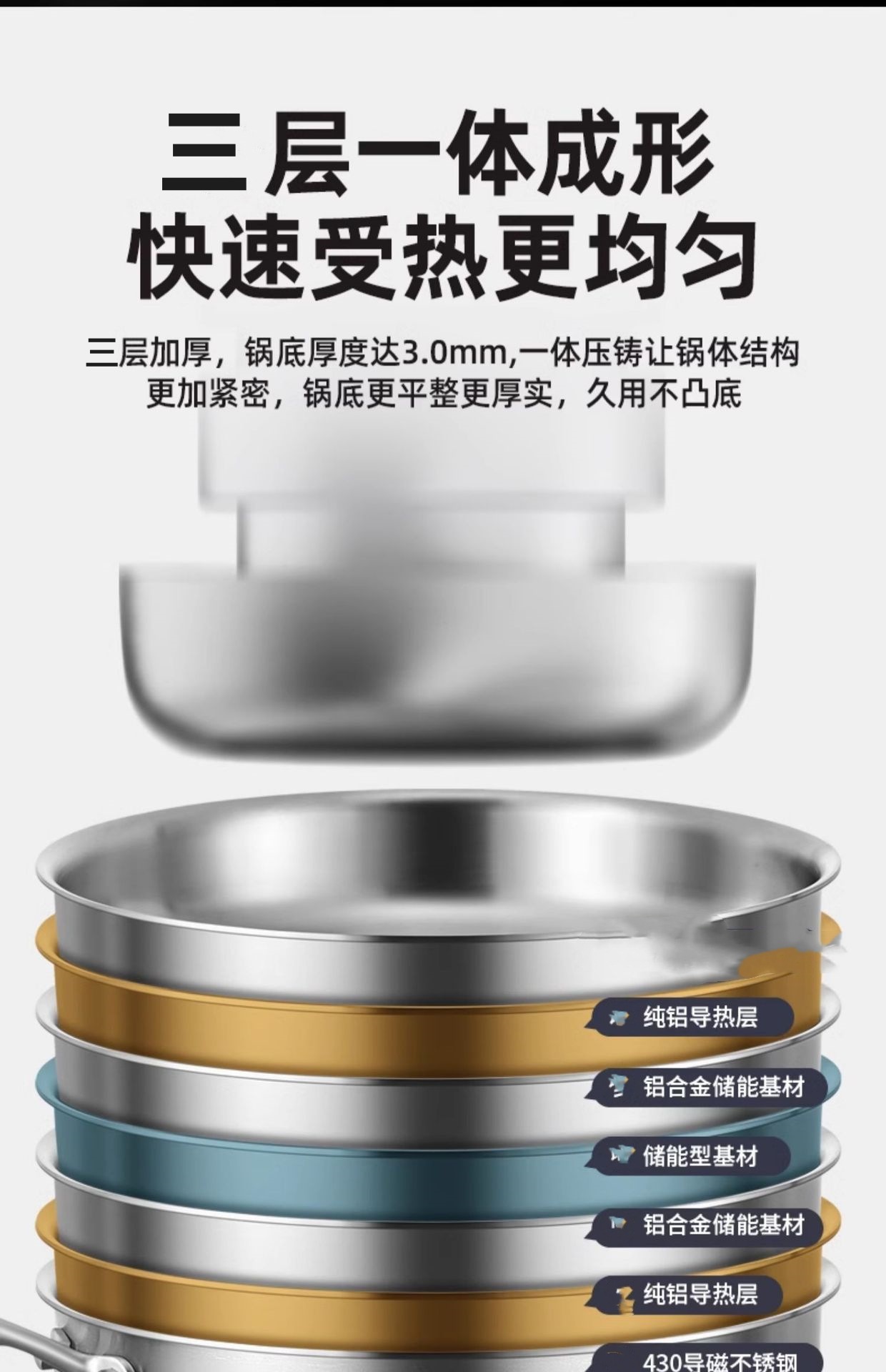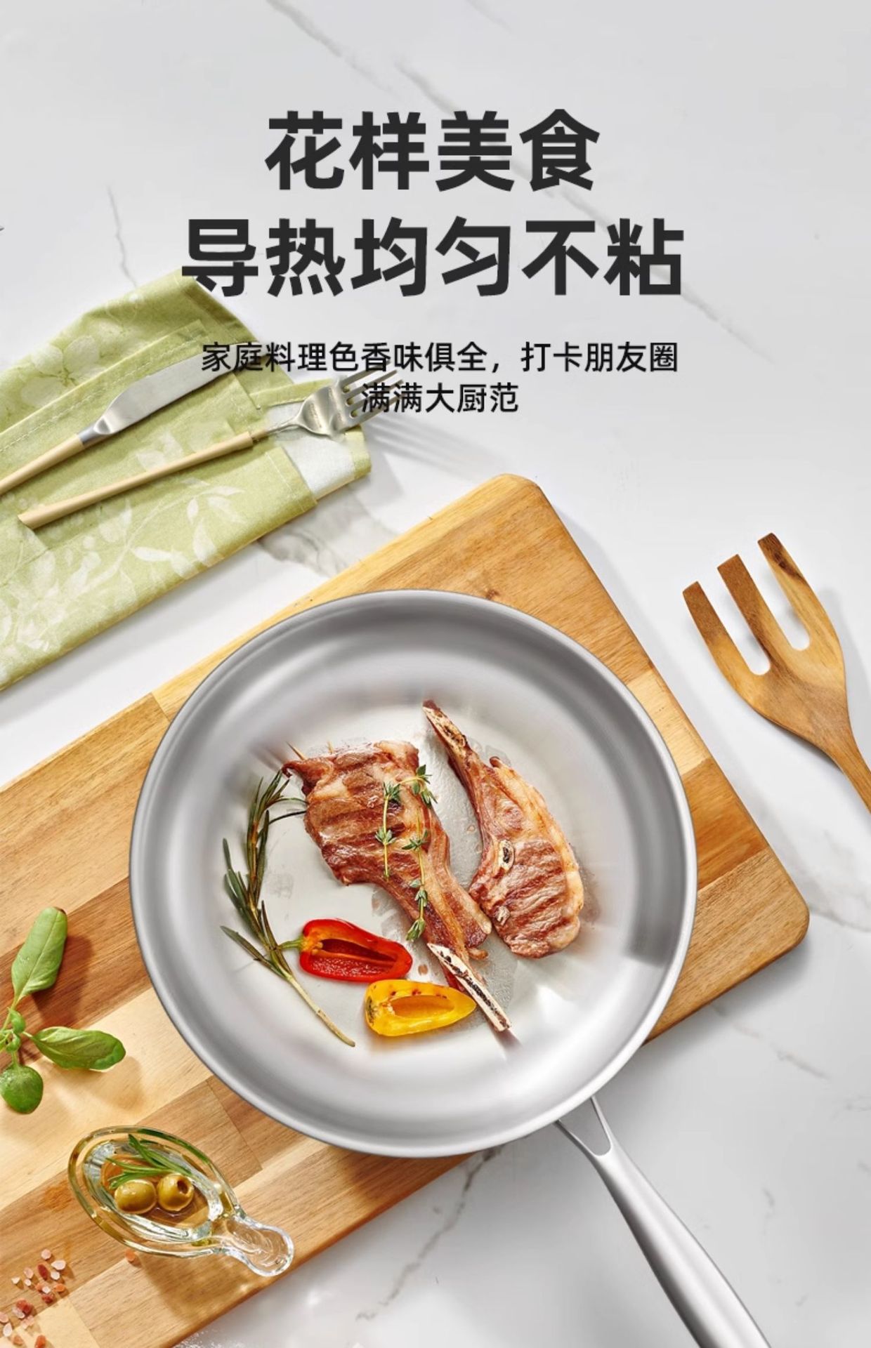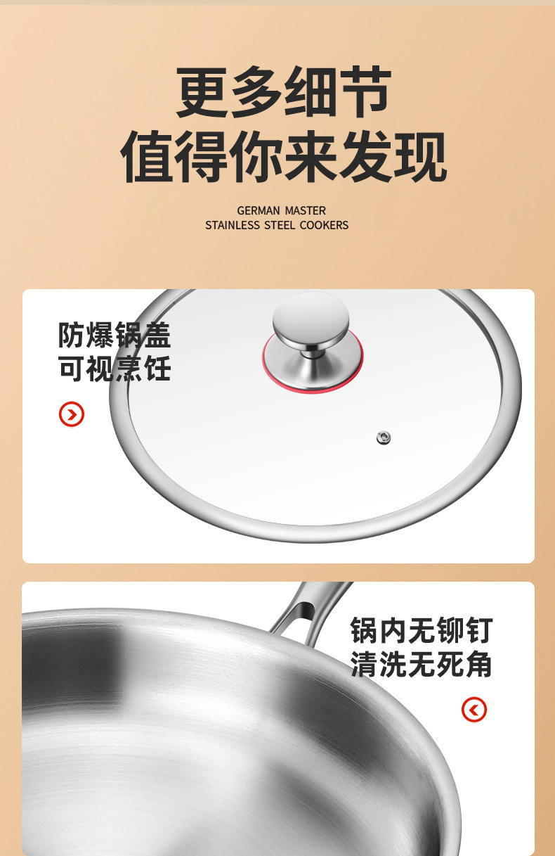 316L不锈钢双面屏蜂窝不粘锅炒菜锅家用无涂层平底炒锅燃气电磁炉