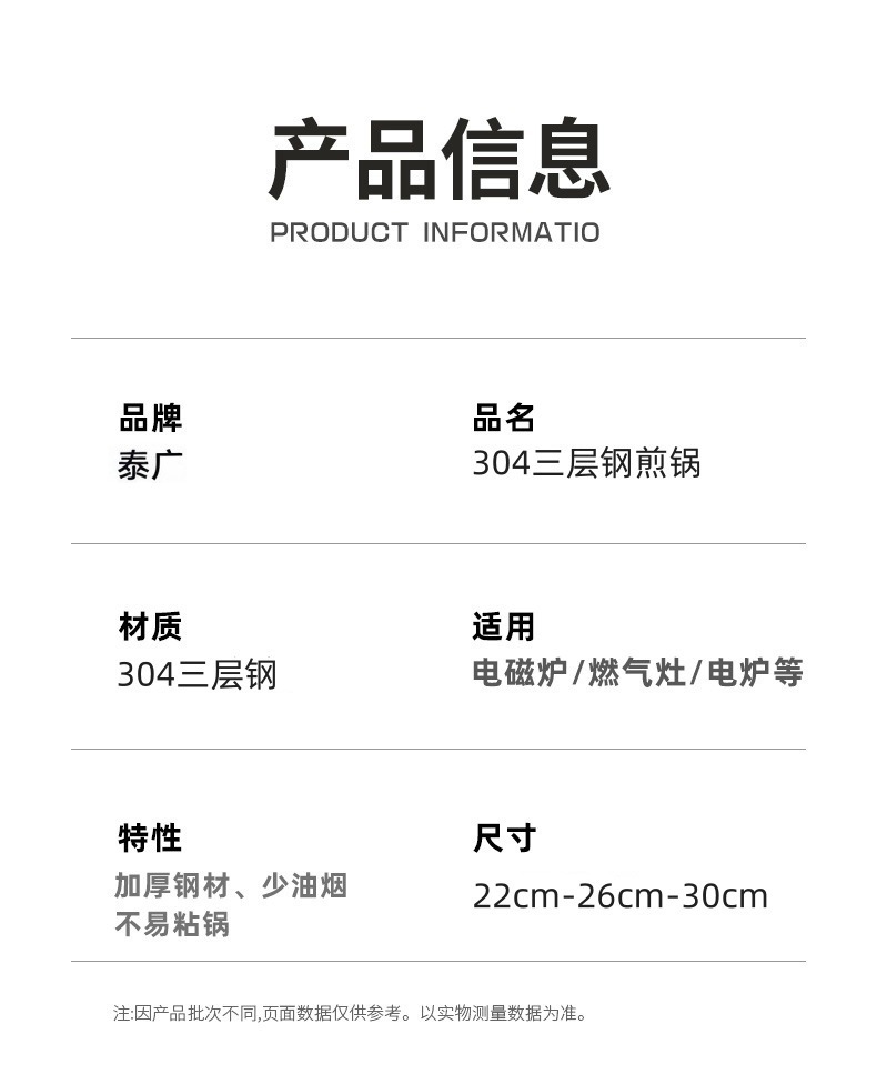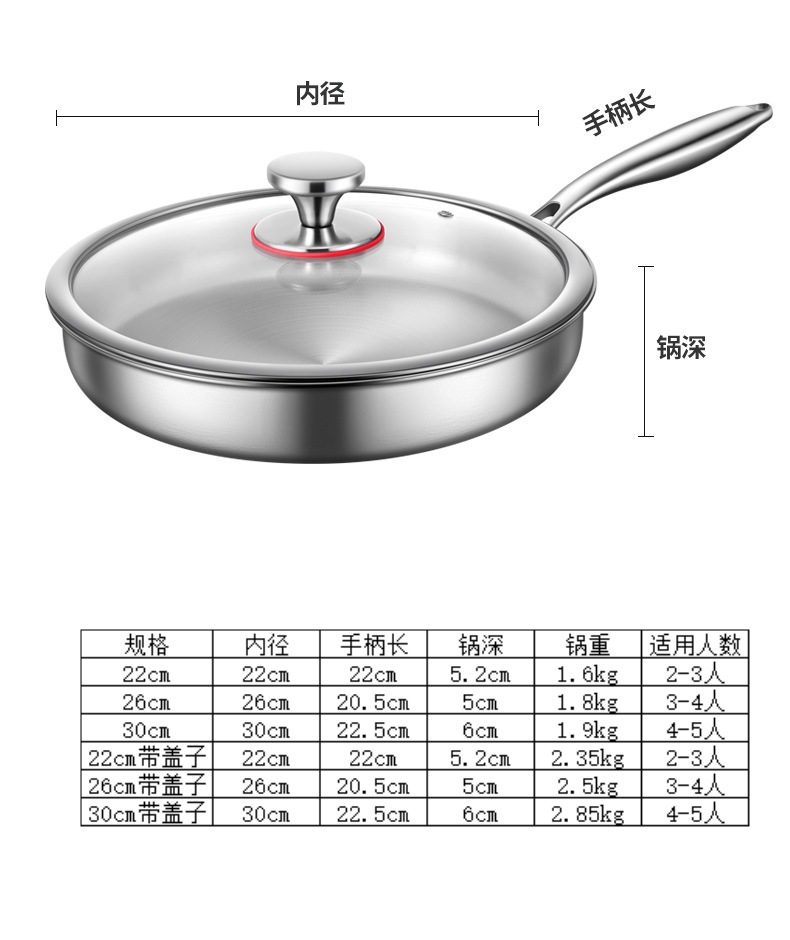 仕様 22CM三層鋼フライパン,26CM三層鋼フライパン,30CM三層鋼フライパン,22CM三層鋼フライパン+蓋,26CM三層鋼フライパン+蓋,30CM三層鋼フライパン+蓋