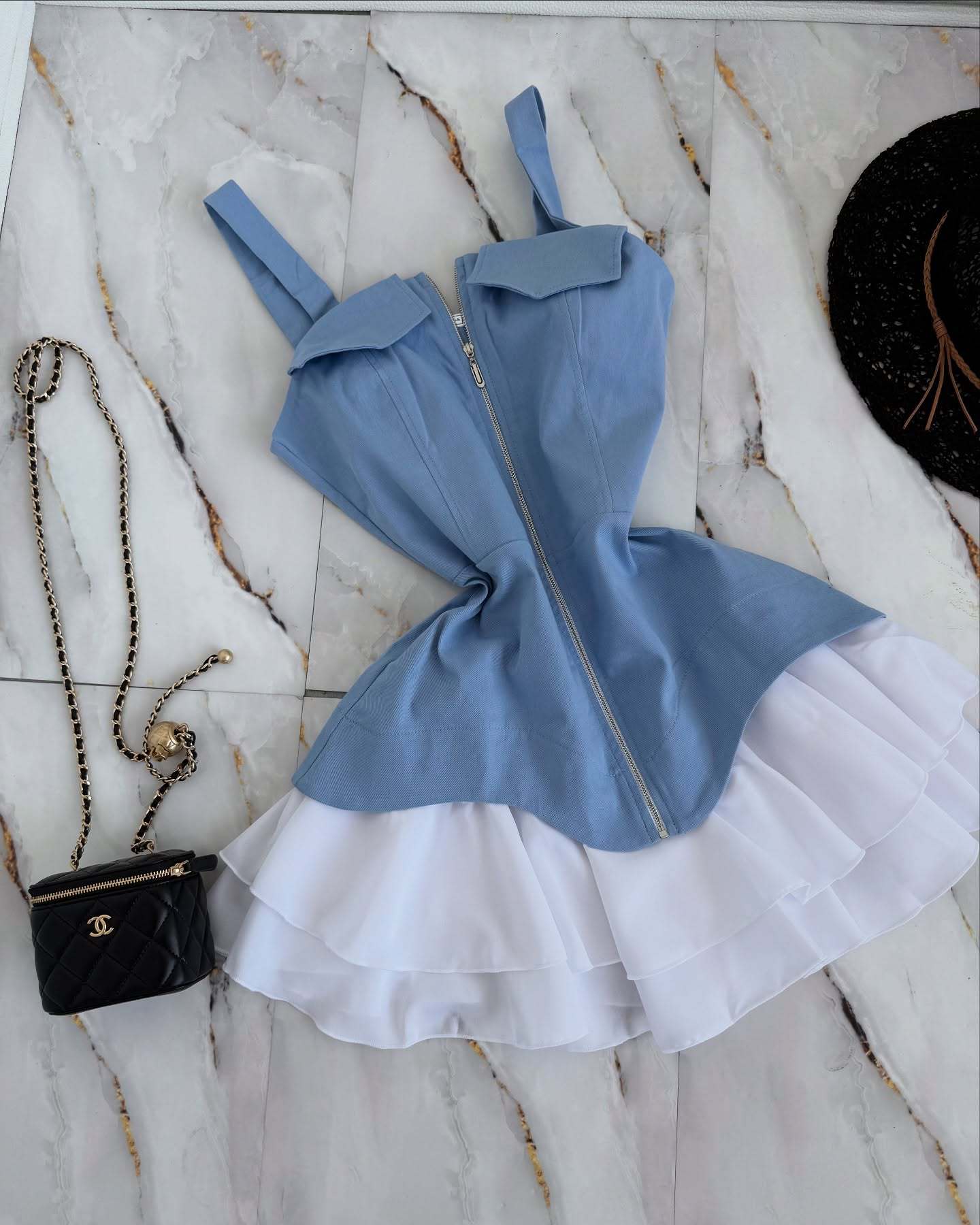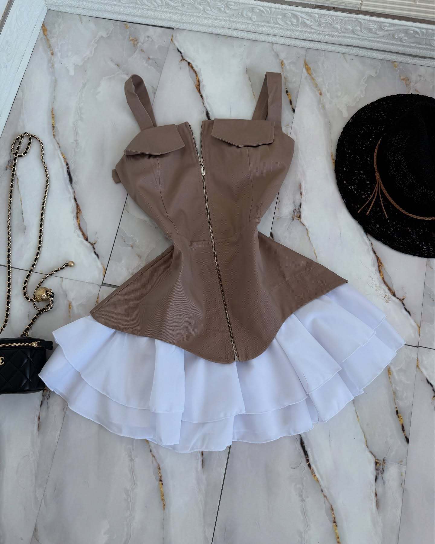 2025 夏の新スタイル純粋な欲望気質スリムノースリーブショートスカートフレンチソリッドカラーフィッシュボーンウエストサスペンダードレス女性