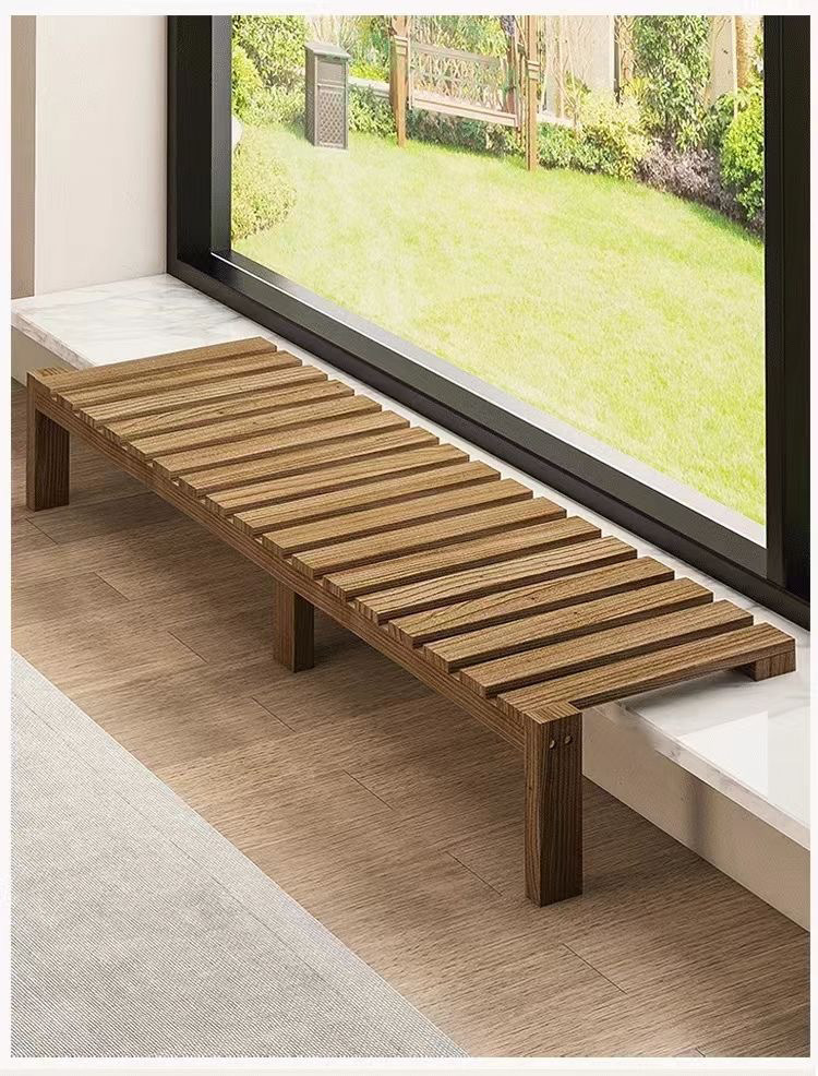 实木阳台养花架台沿加宽简易花架炭烧松木防腐落地窗台置物架货源