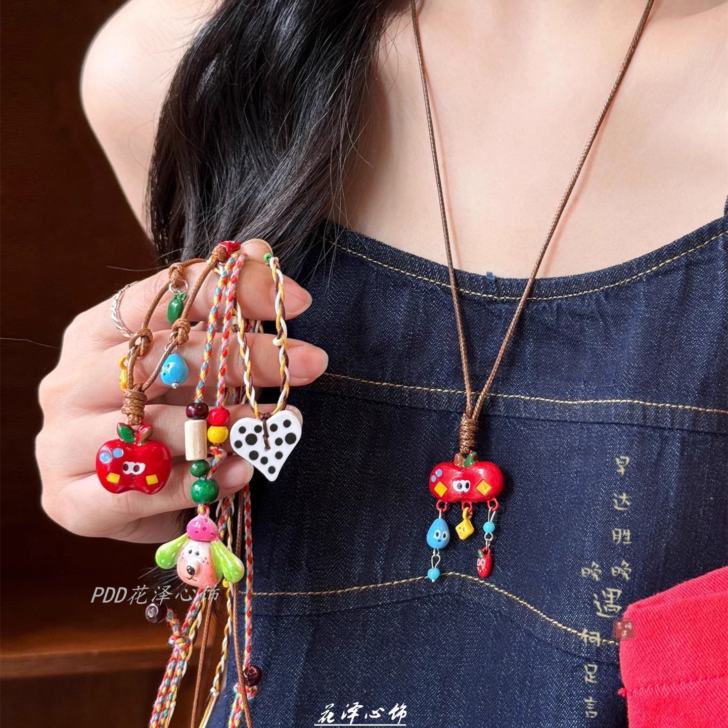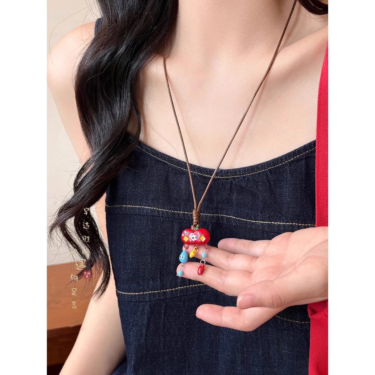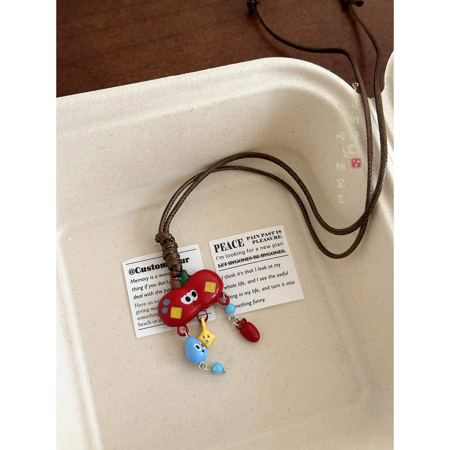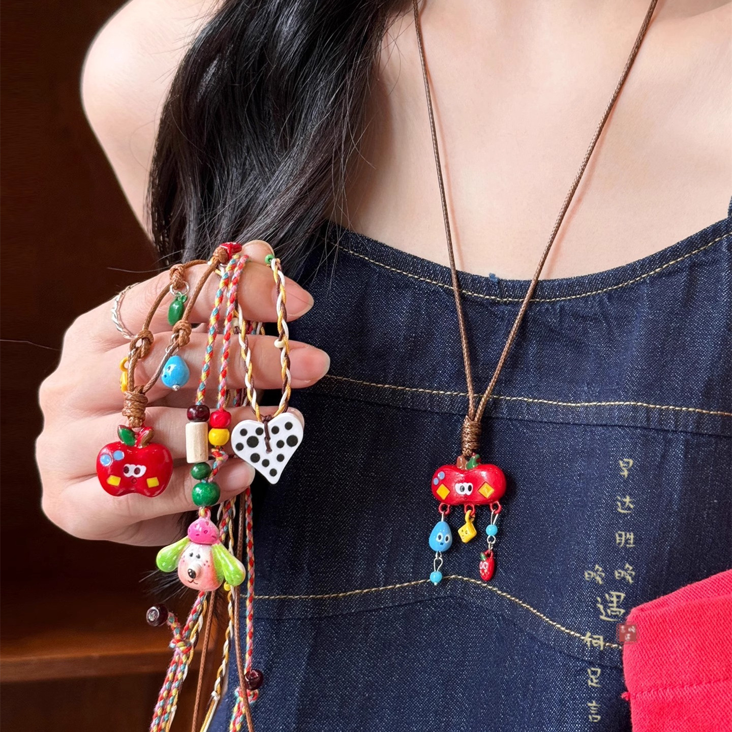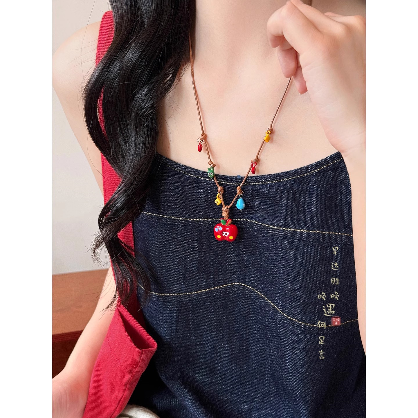 ドーパミン漫画カラーアップルタッセル編組ロープネックレス女性のかわいいニッチロングホルターネックセーターチェーンアクセサリー