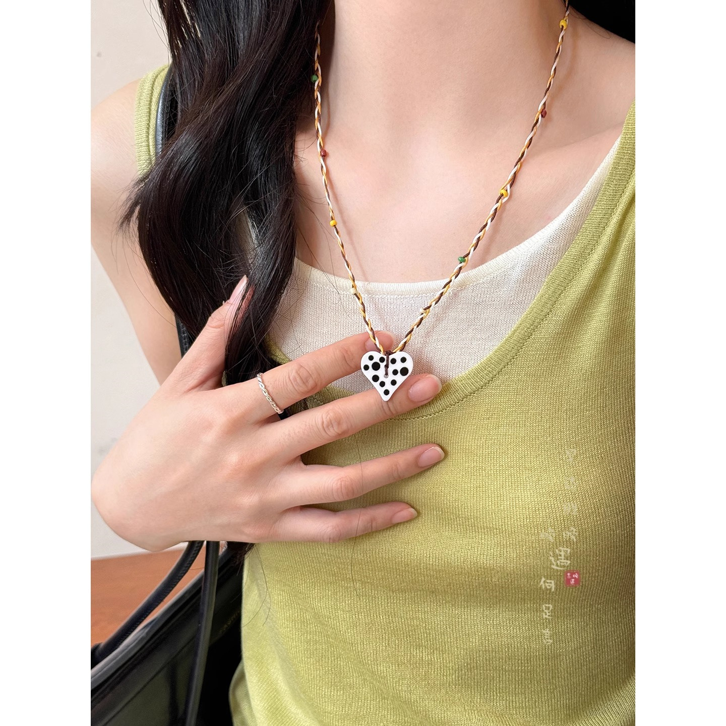 チタン鋼非退色ラブペンダントタッセルネックレス女性のための 2025 新しい夏のロングセーターチェーンアクセサリー