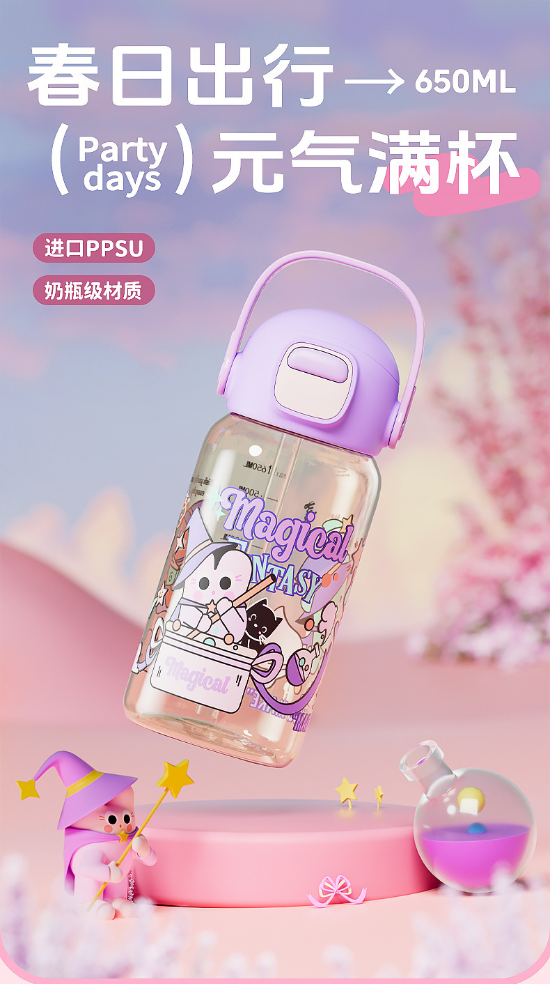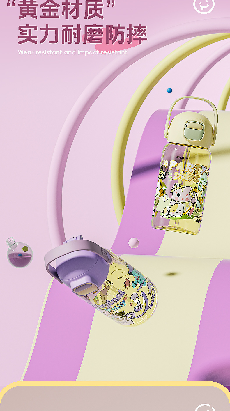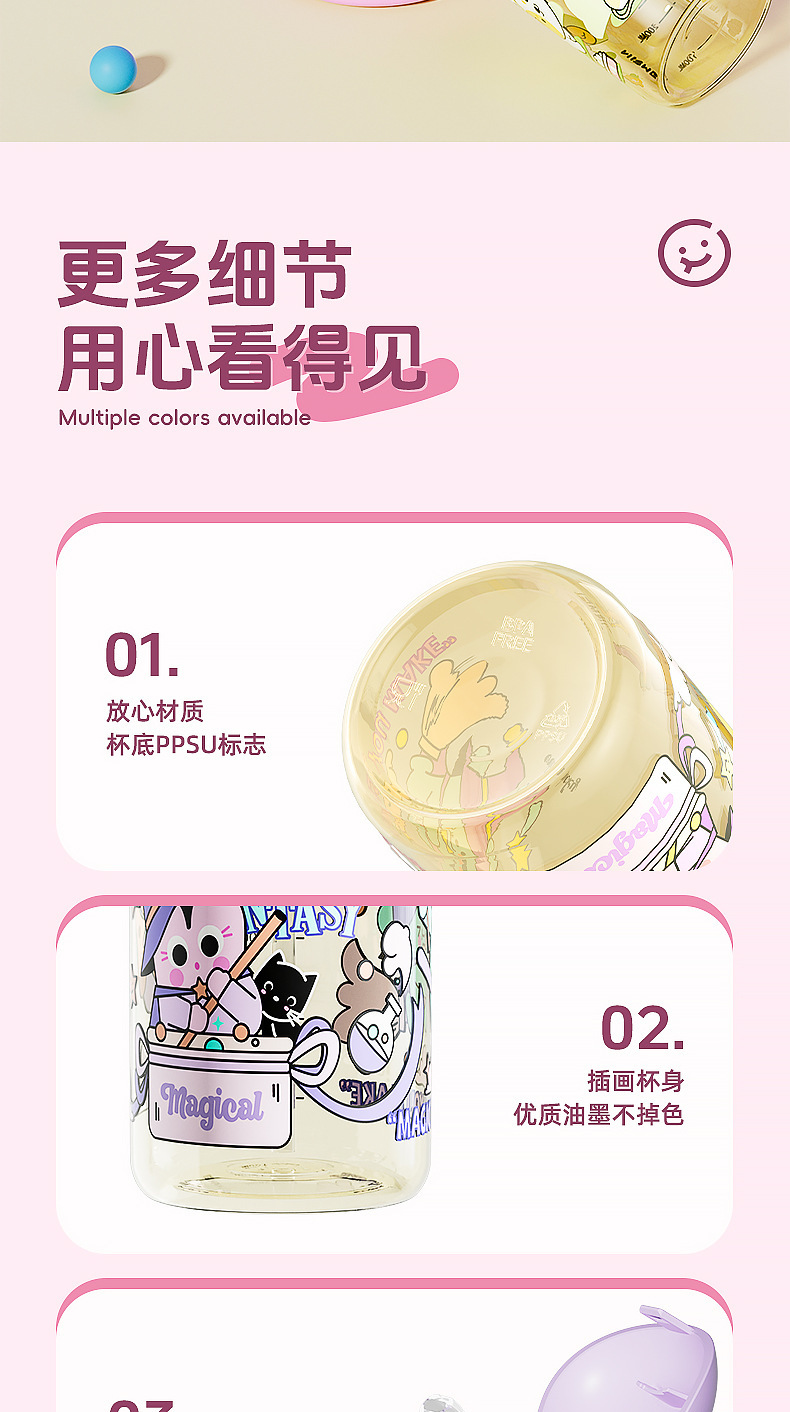 Enmei ppsu プラスチックカップ子供用ストローカップ学校高温耐性スケール付き直接飲料水カップ夏の卸売