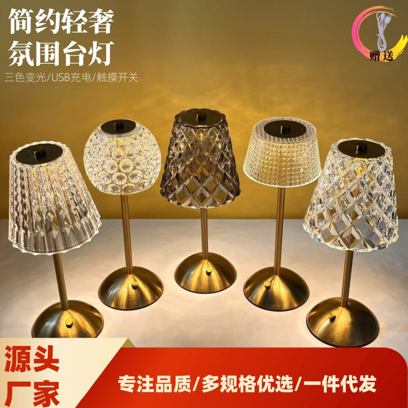 国境を越えた人気のクリスタルテーブルランプ、ベッドサイドランプ、充電式ナイトライト、アンビエントライト、寝室のアメリカンライト高級装飾バーライト