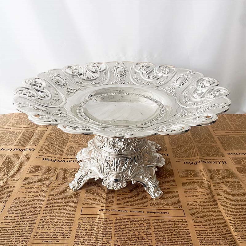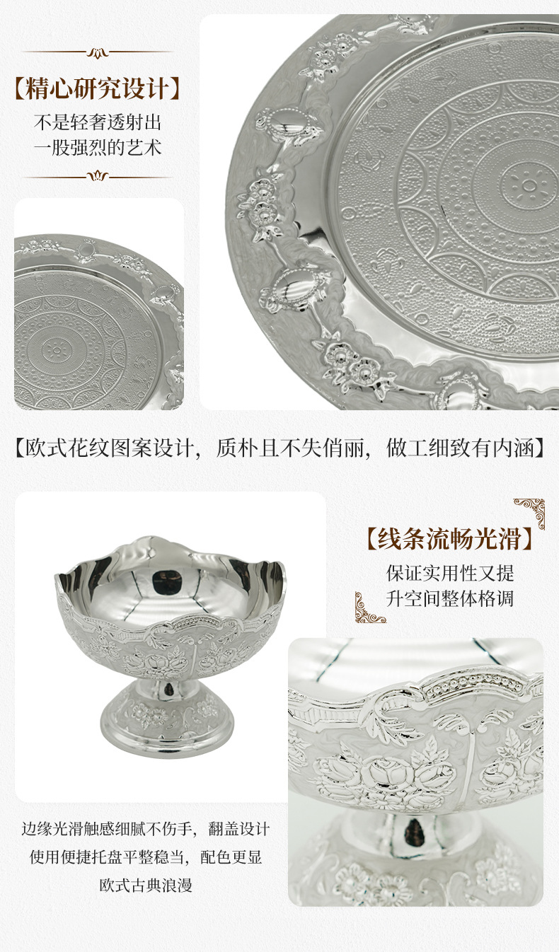 ヨーロッパの果物の皿の新型の復古の贈り物の金属は結婚式の工芸品のトレーを飾って家庭の食器の果物の皿を飾ります。