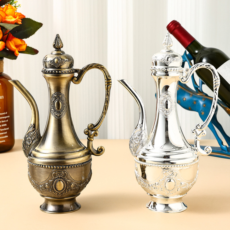 ヨーロッパ式の金属の白酒の酒の壺の家庭用の復古のアイデアの青銅の酒の道具は酒の壺に行って酒の器の結婚の敬器の置物を分けます。